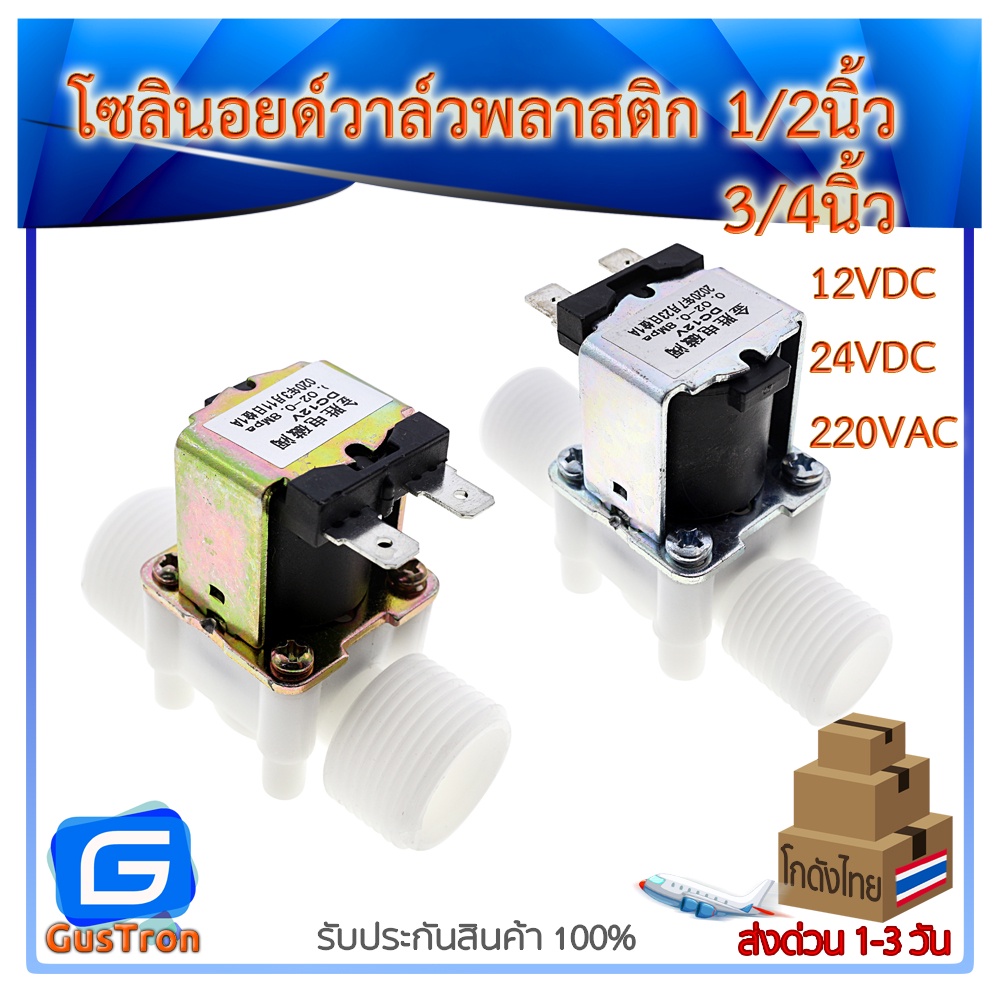 โซลินอยด์วาล์วพลาสติก วาล์วไฟฟ้า วาล์วน้ำ (1/2นิ้ว 4หุน) (3/4นิ้ว 6หุน) แบบปกติปิด 220V/12V/24V