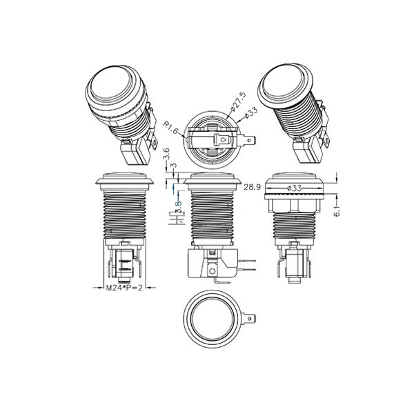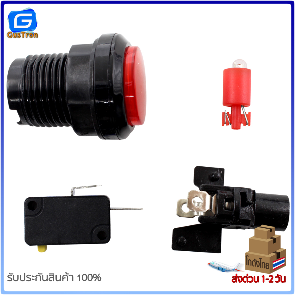 สวิทช์พร้อมปุ่มกดขนาดเล็ก ปุ่มกดเกมขนาด 33mm มีไฟ สีแดง เหลือง เขียว น่ำเงิน ขาว
