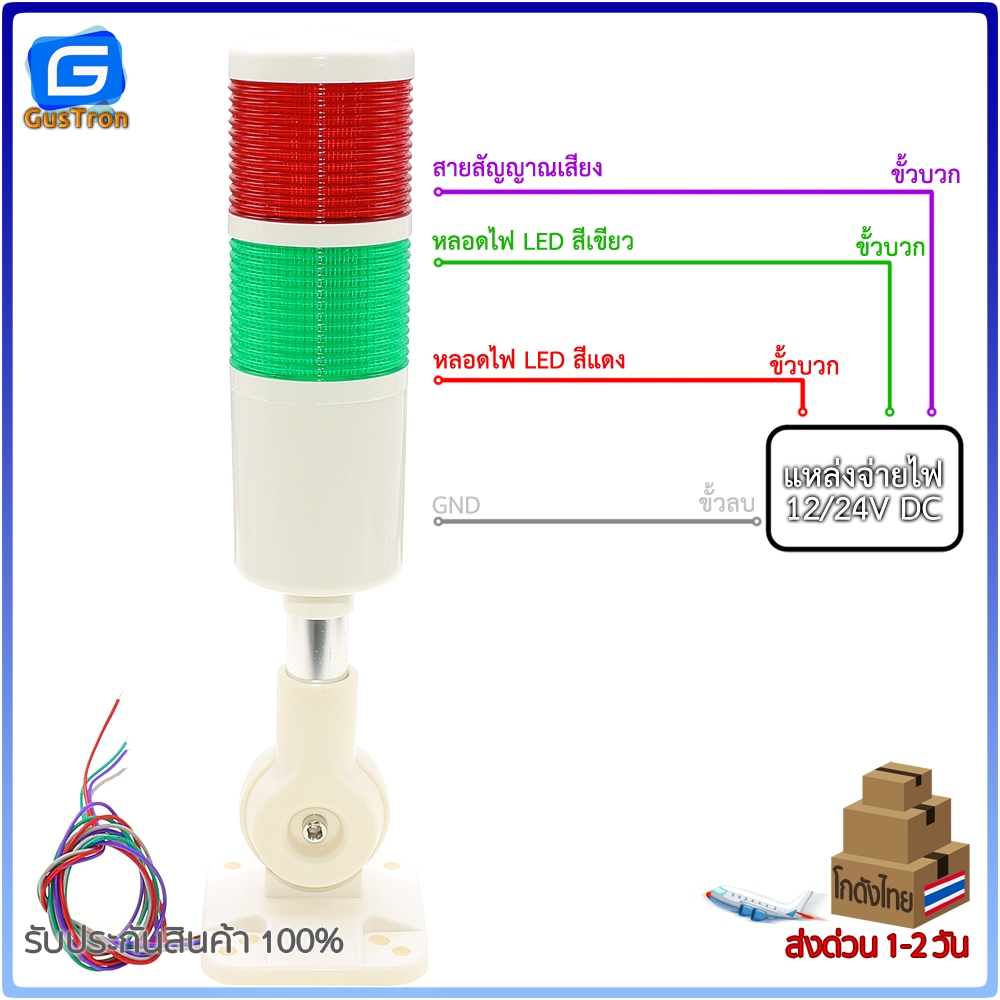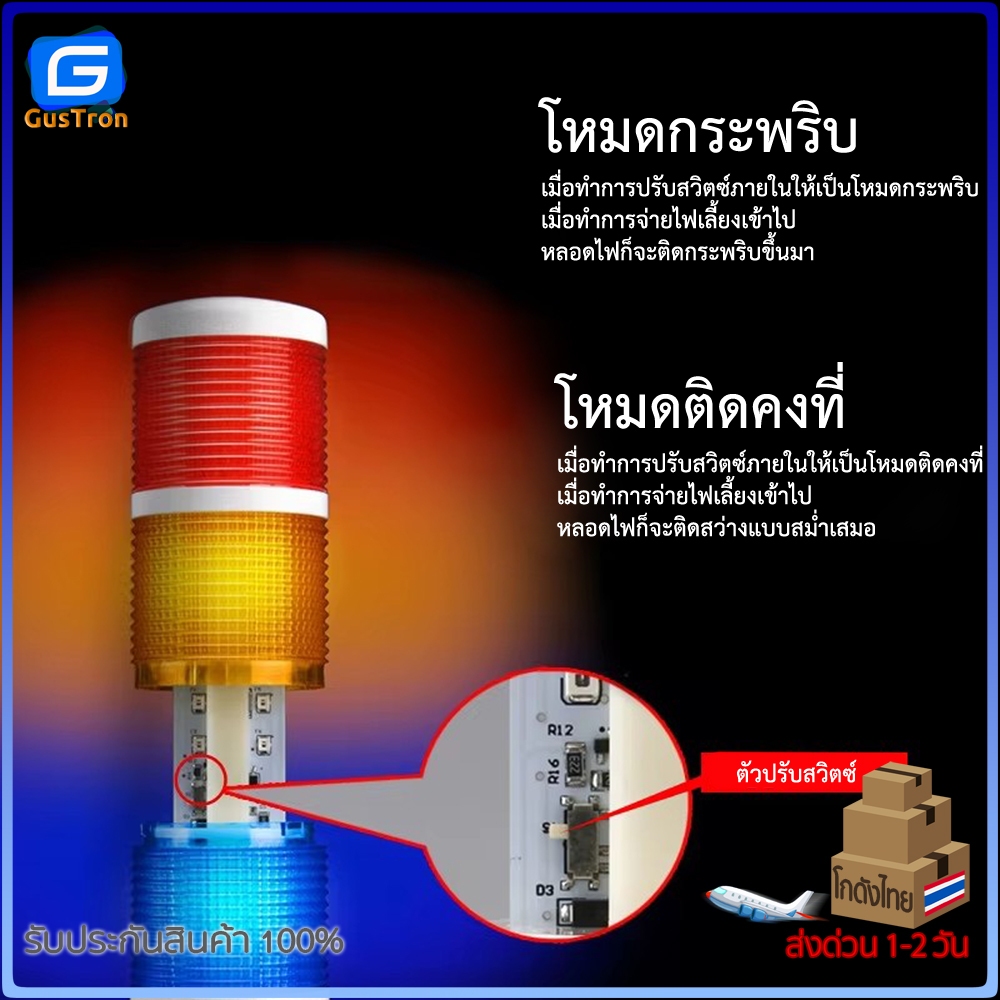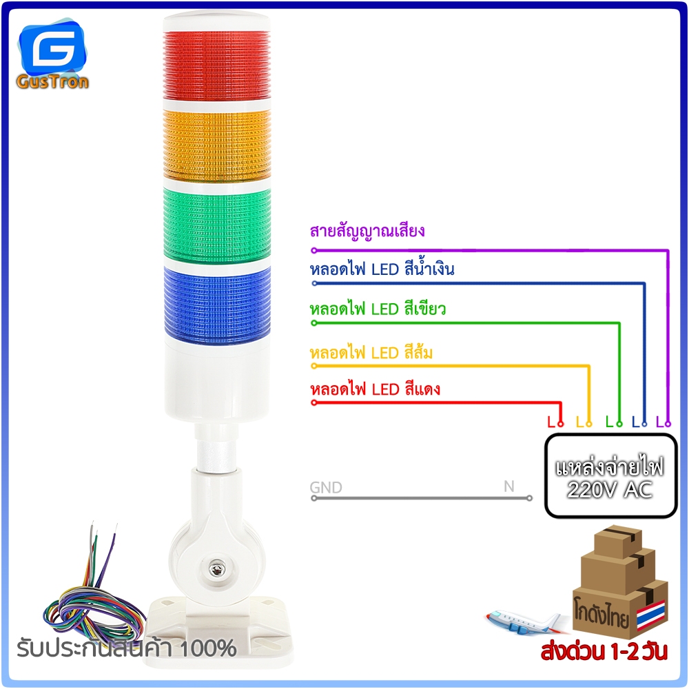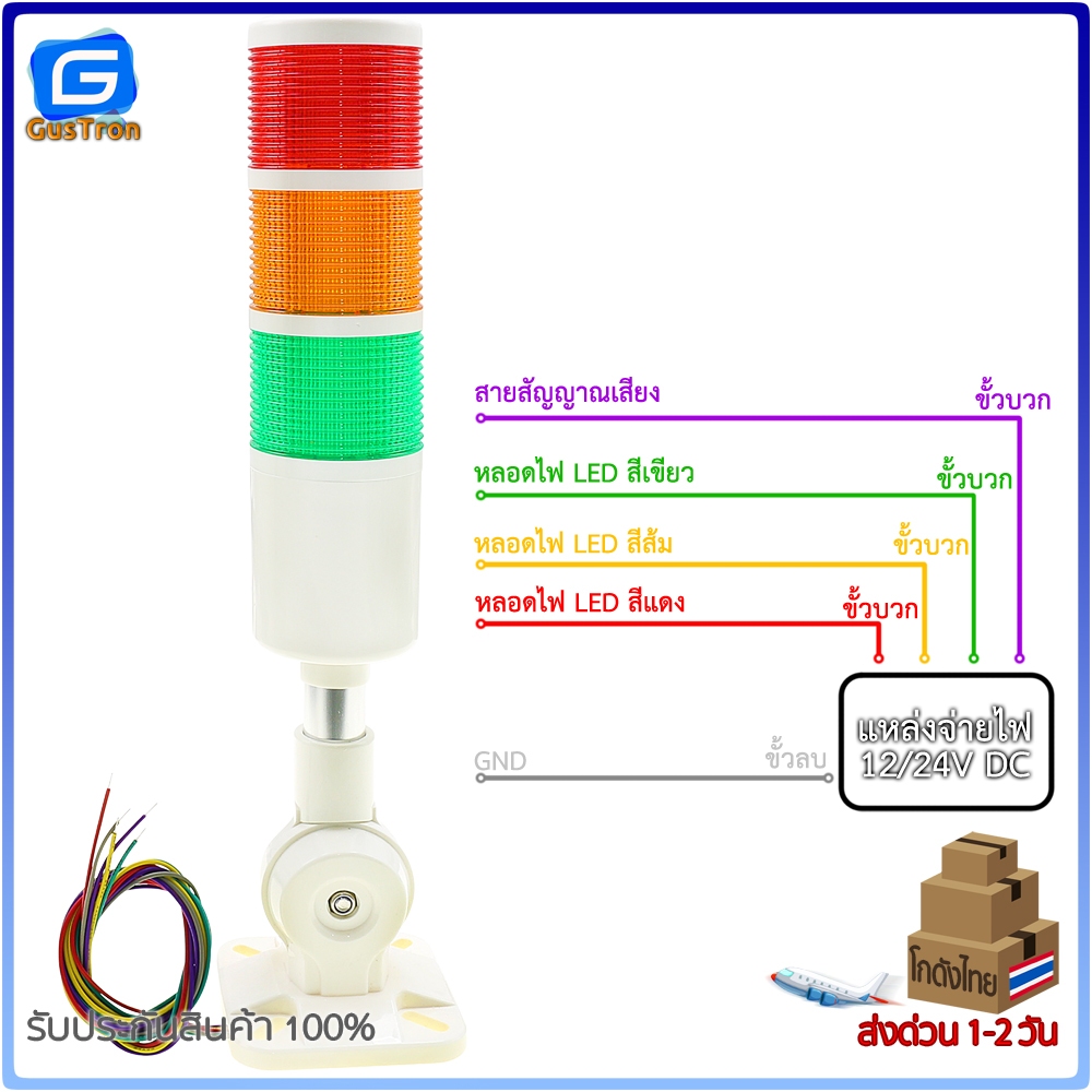 ไฟทาวเวอร์ไลท์ Tower Light XH50 3สี แดง เหลือง เขียว พร้อมเสียง ปรับไฟติดค้างและปรับไฟพริบได้ 12-24V 220V