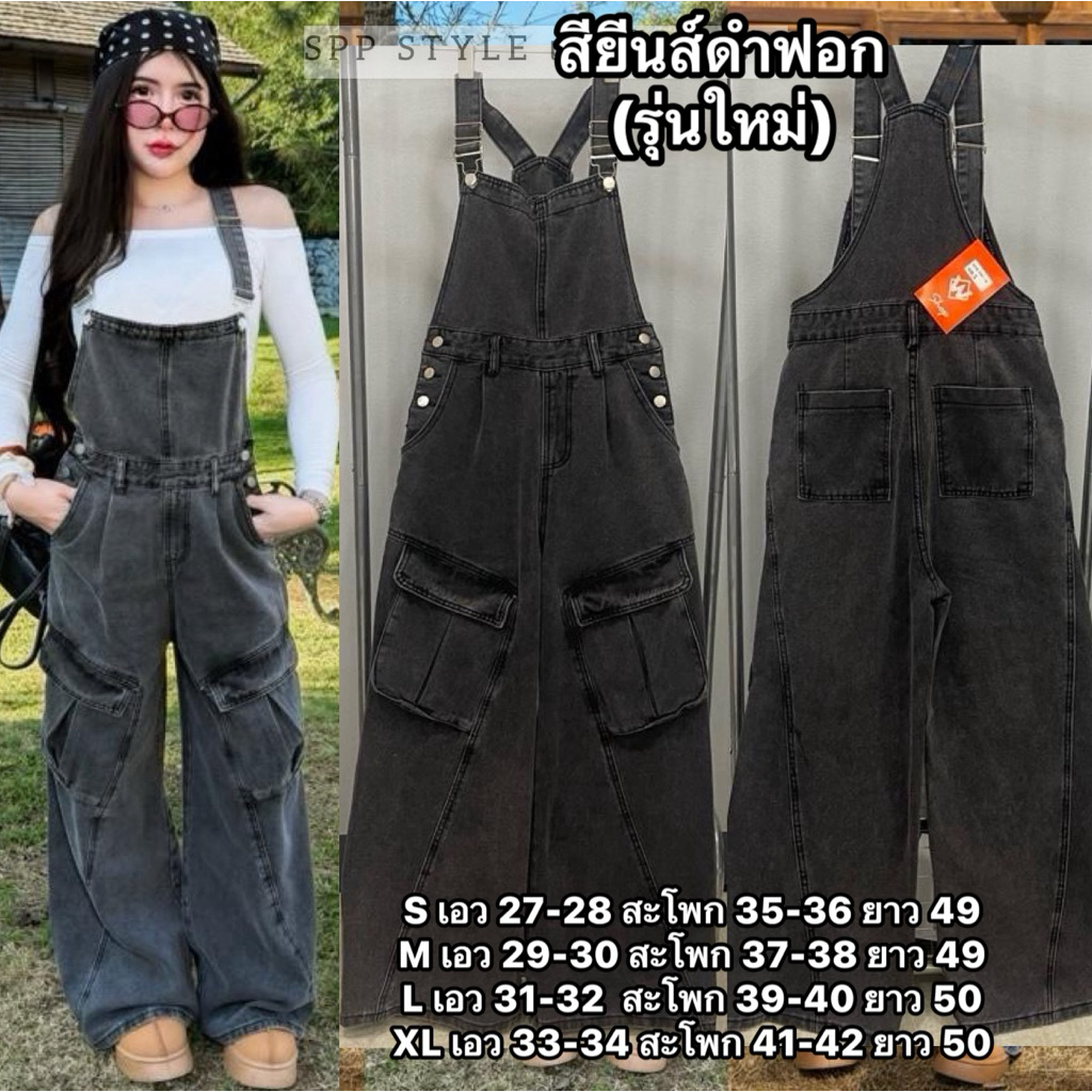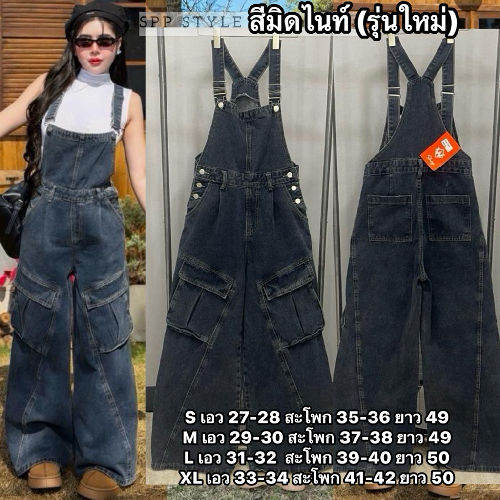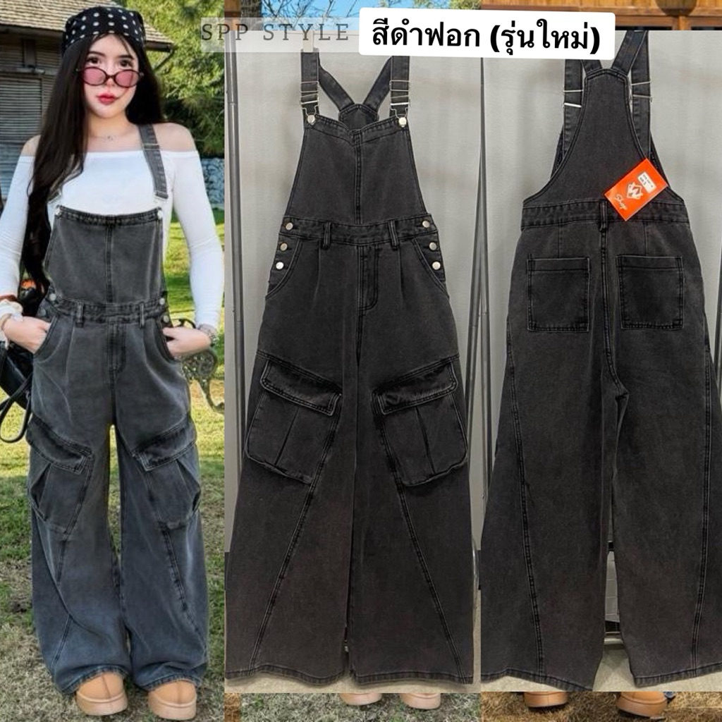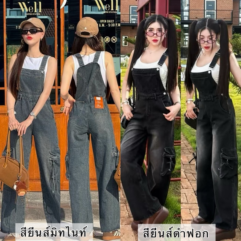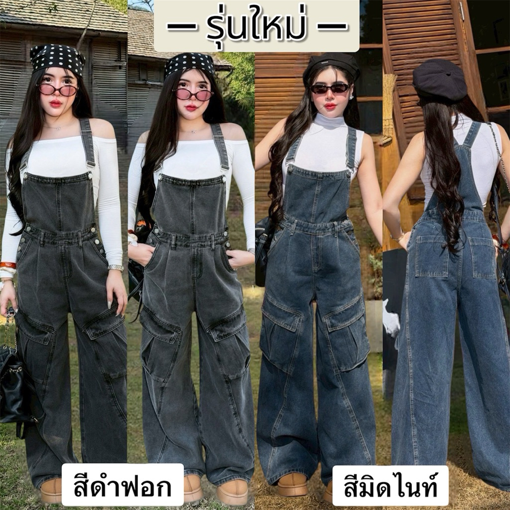 [ พร้อมส่ง ] 🖤💙 เอี๊ยมยีนส์ขายาวแต่งกระเป๋าด้านหน้าและด้านข้าง