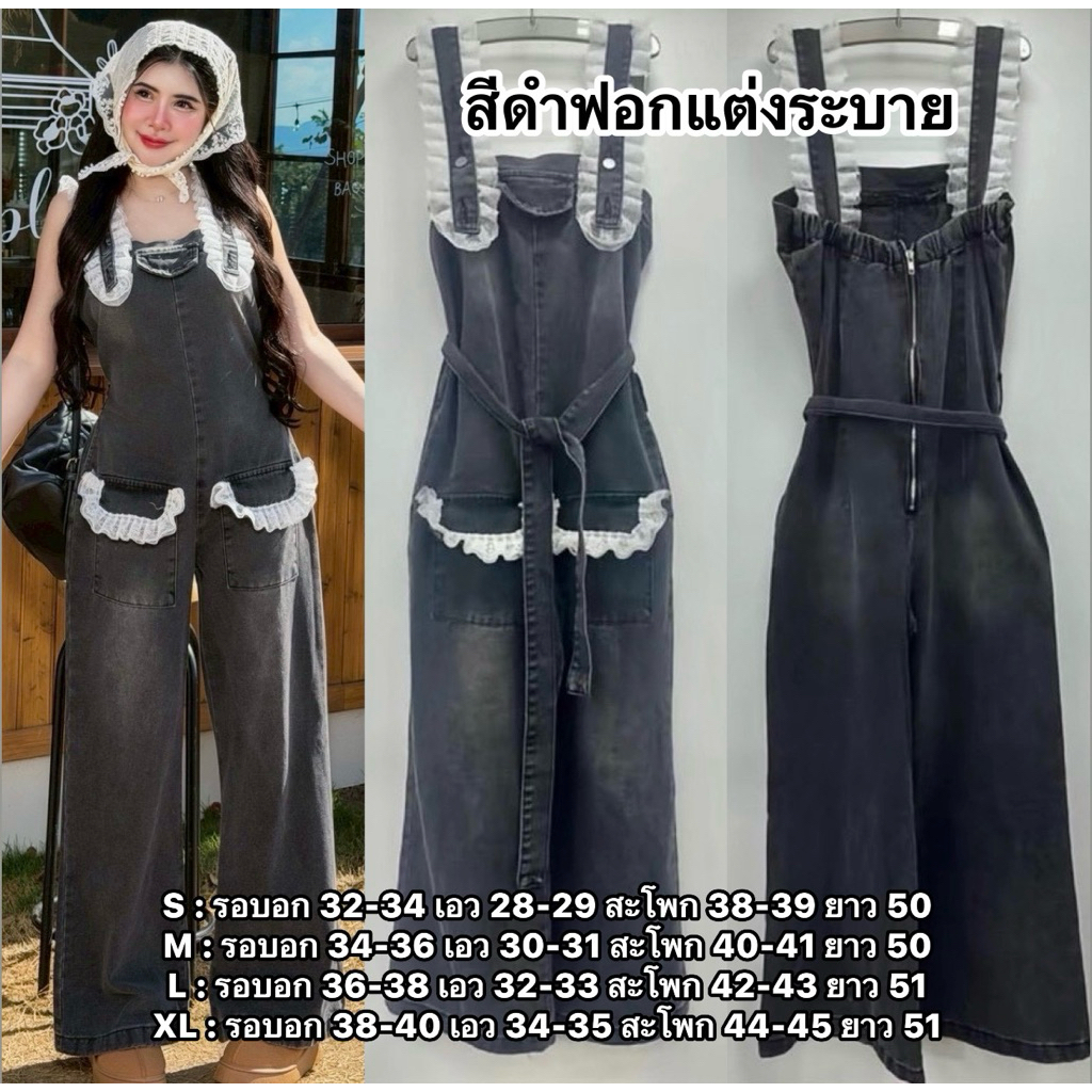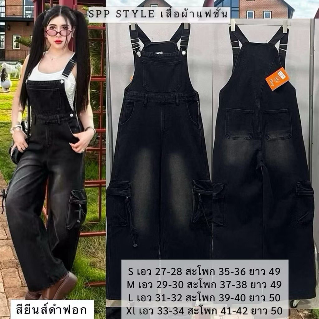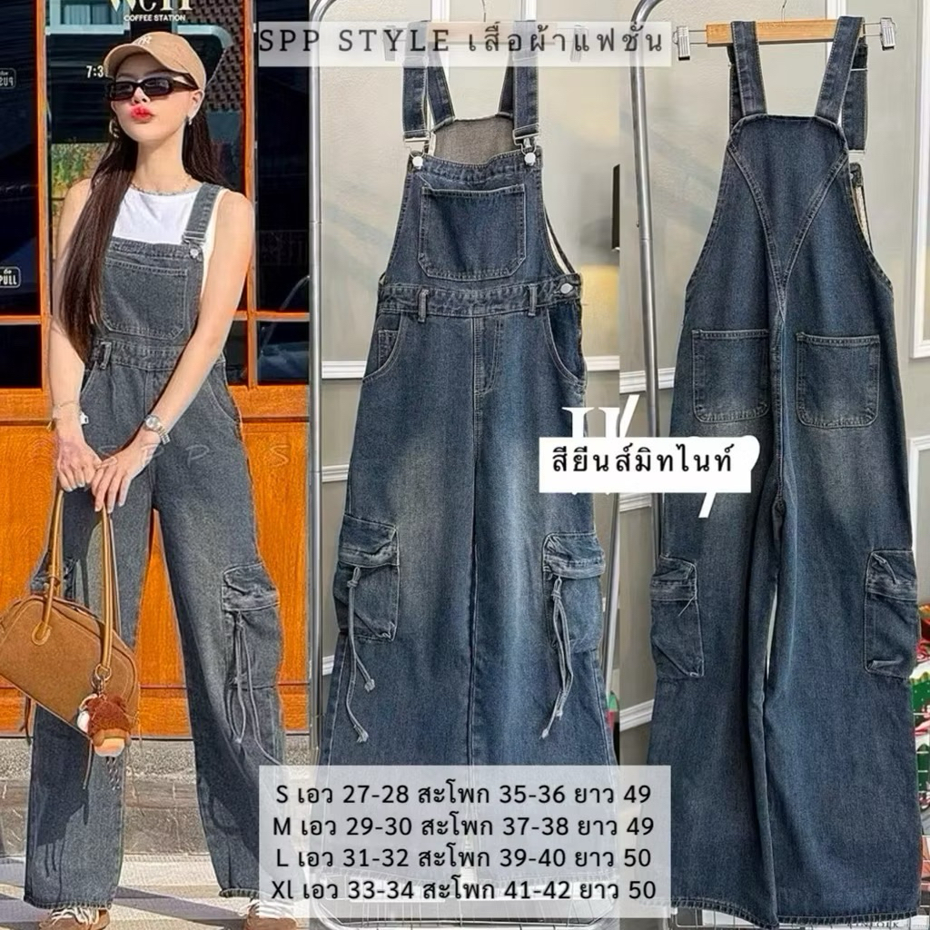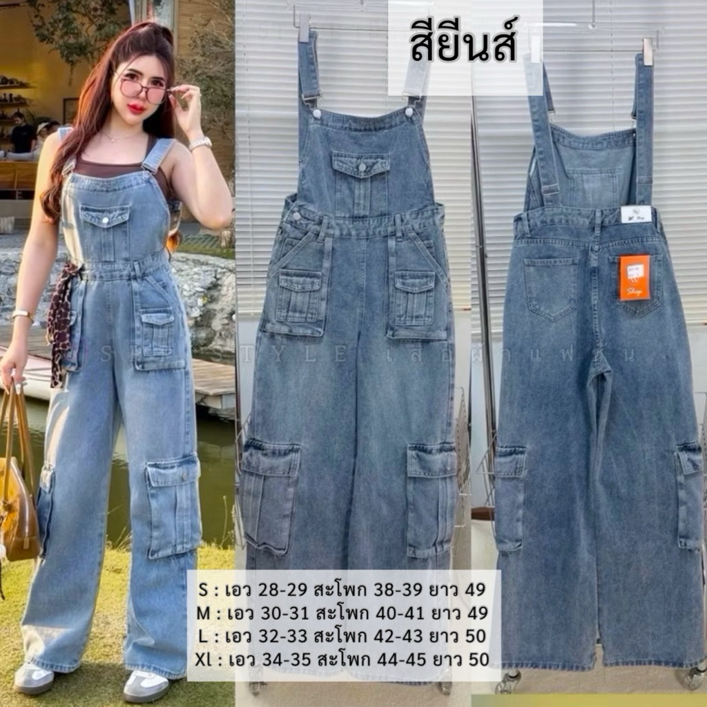 [ พร้อมส่ง ] 🖤💙 เอี๊ยมยีนส์ขายาวแต่งกระเป๋าด้านหน้าและด้านข้าง