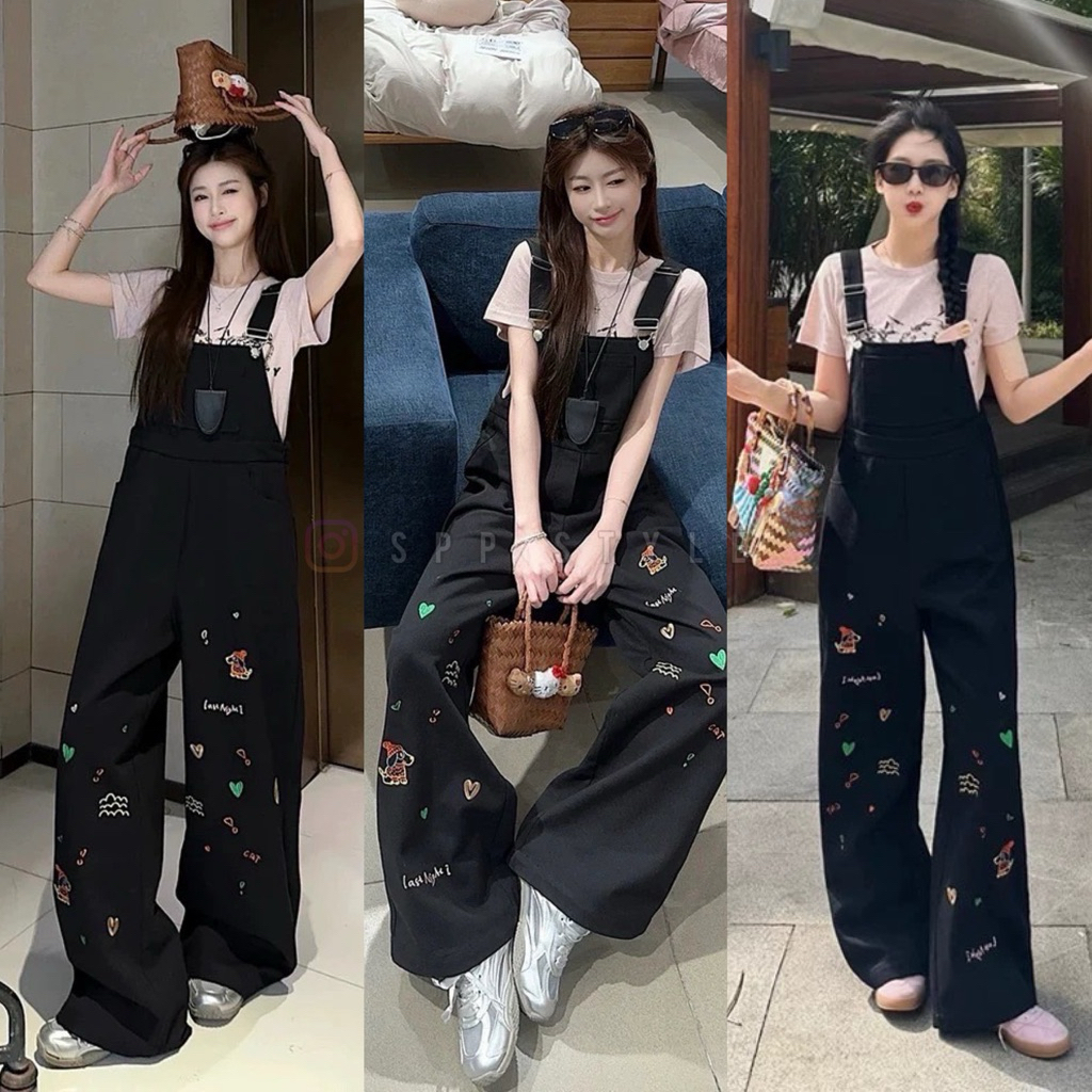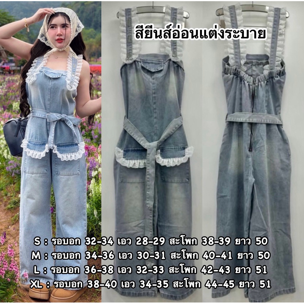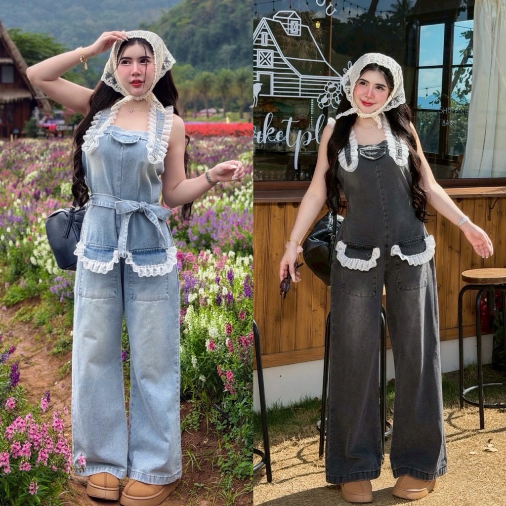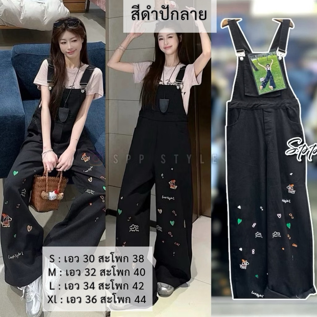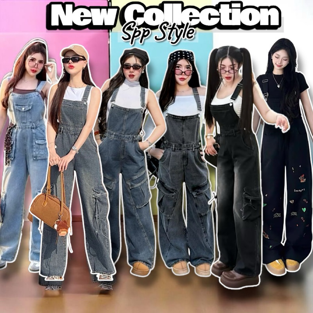 [ พร้อมส่ง ] 🖤💙 เอี๊ยมยีนส์ขายาวแต่งกระเป๋าด้านหน้าและด้านข้าง