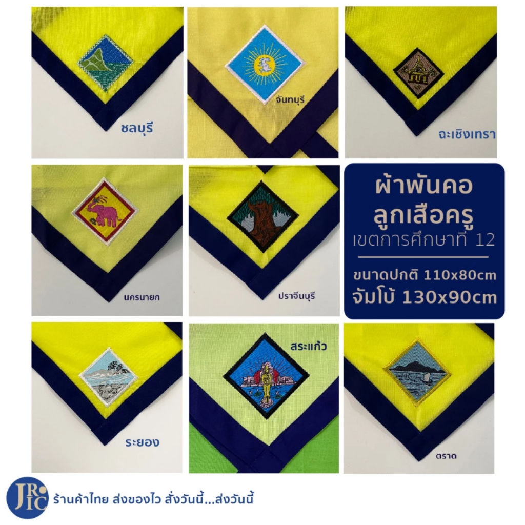 (พร้อมส่ง) ผ้าพันคอลูกเสือครู จันทบุรี ฉะเชิงเทรา ชลบุรี ตราด นครนายก ปราจีนบุรี ระยอง สระแก้ว เขตการศึกษาที่ 12