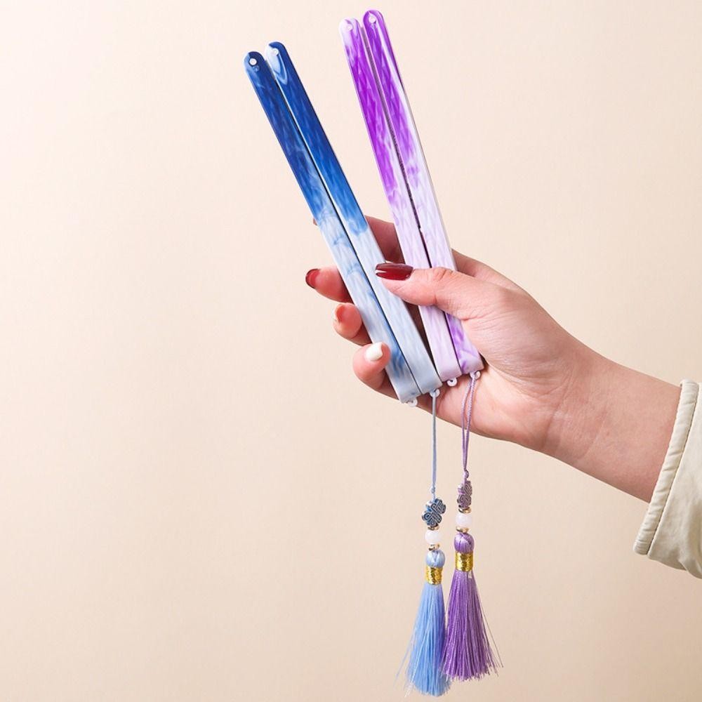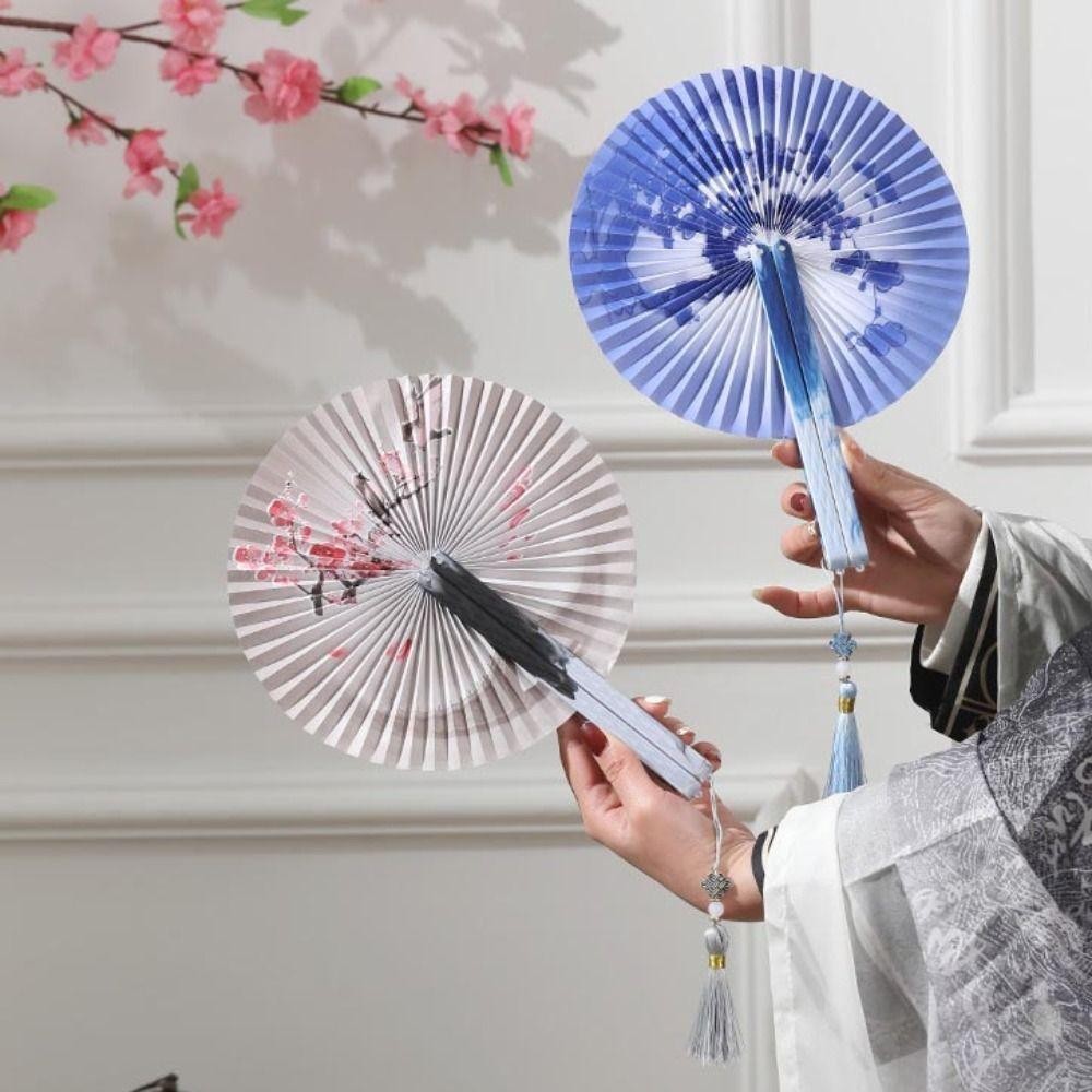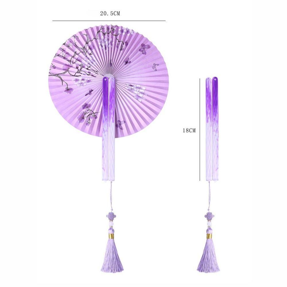 PREVA พัดลมกระดาษพับได้, พัดลมวงกลมพลาสติกกระดาษ, พัดลมตกแต่ง Elegent พู่สีสันสดใสแบบพกพาของขวัญ