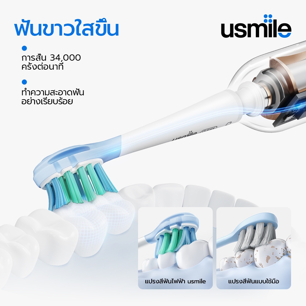 usmile P10 Sonic Toothbrush แปรงสีฟันไฟฟ้า 3 โหมด ตัวสั่นเตือนอัจฉริยะ ชาร์จครั้งเดียวใช้ได้นาน 1 ปี การรับประกัน 1 ปี เปลี่ยนเท่านั้น ไม่ต้องซ่อม
