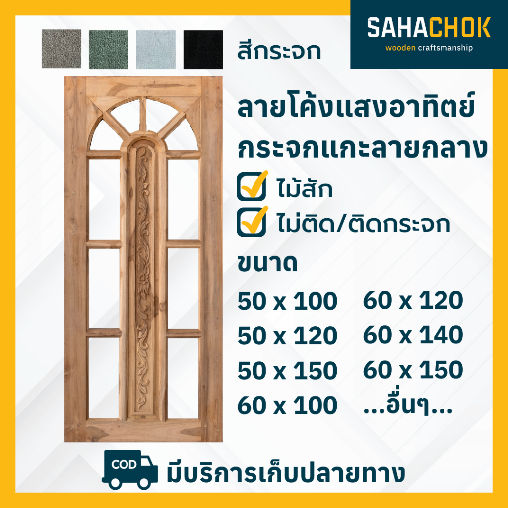 หน้าต่างไม้สักและไม้เนื้อแข็ง บานยาว ขนาดพิเศษตั้งแต่ กว้าง 40-60 เซนติเมตร ยาว 100-150 เซนติเมตร