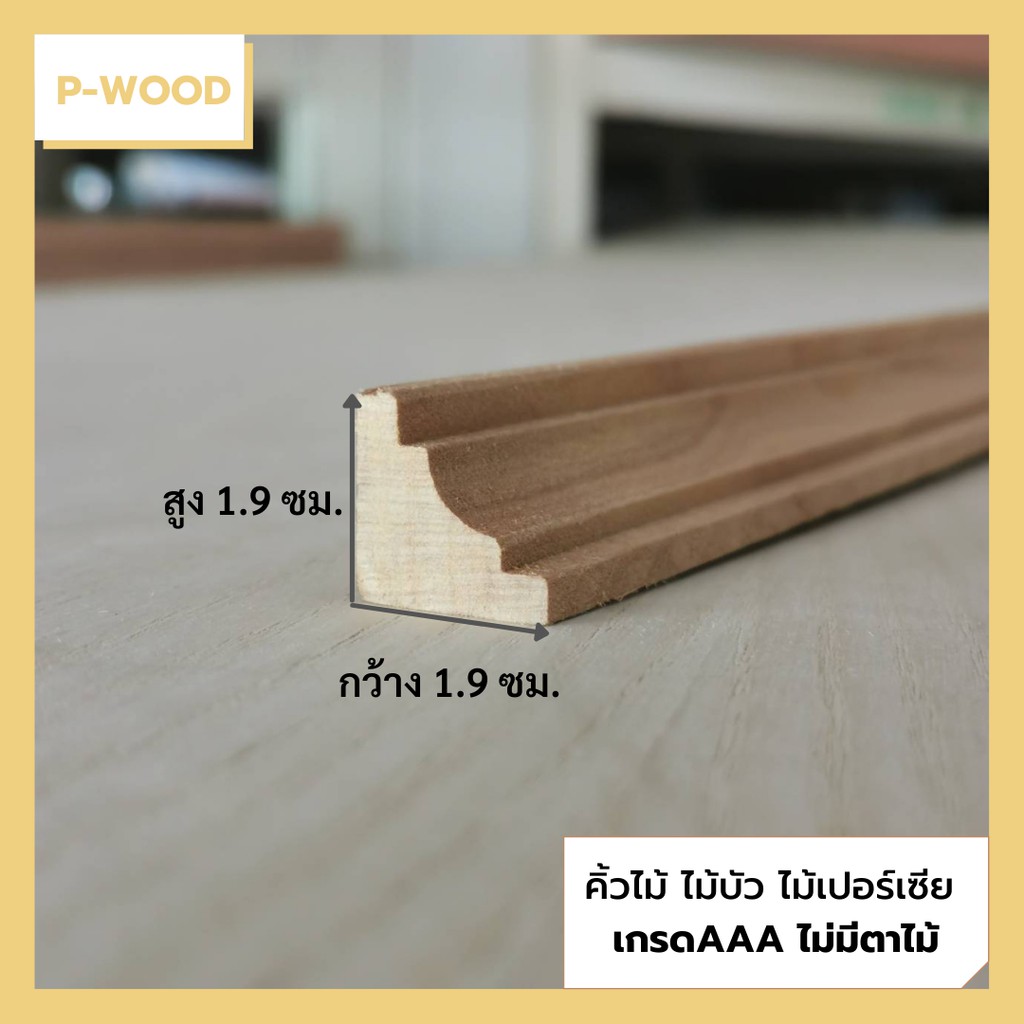 คิ้วไม้ ไม้บัว D12/1 คิ้วบัวฉากมุมใน 1.9 x 1.9 ซม. ยาว 100 ซม.ไม้เปอร์เซีย no.D12/1