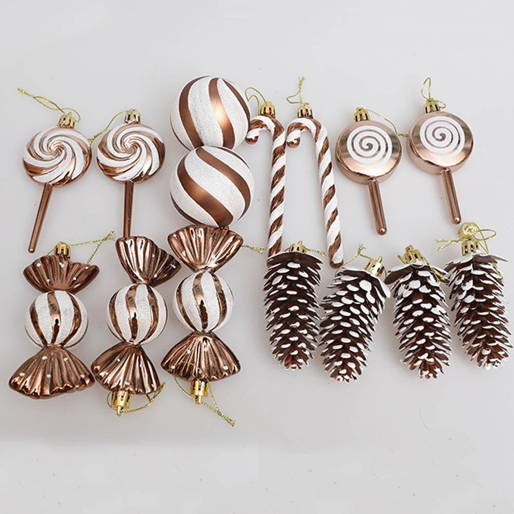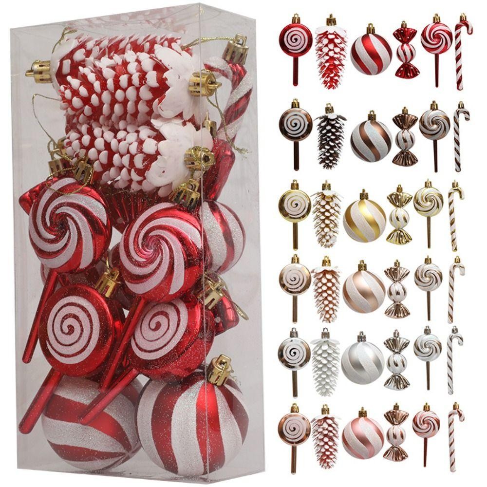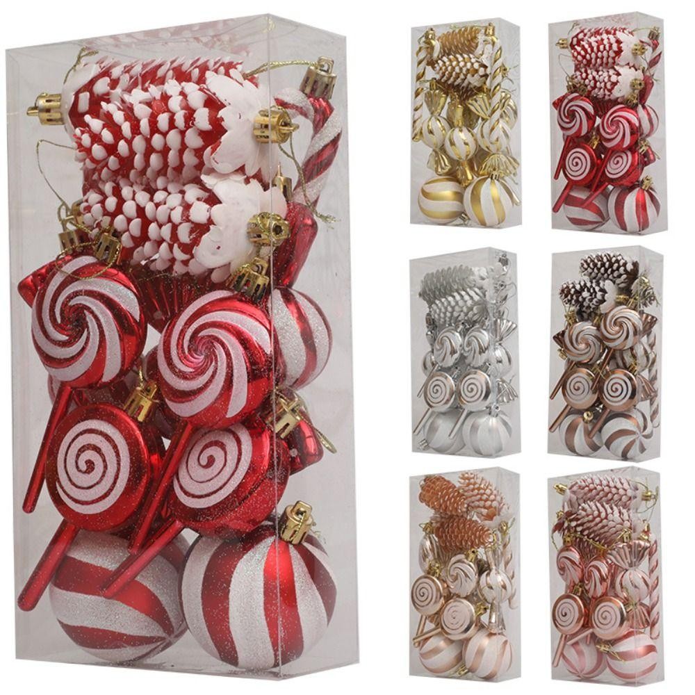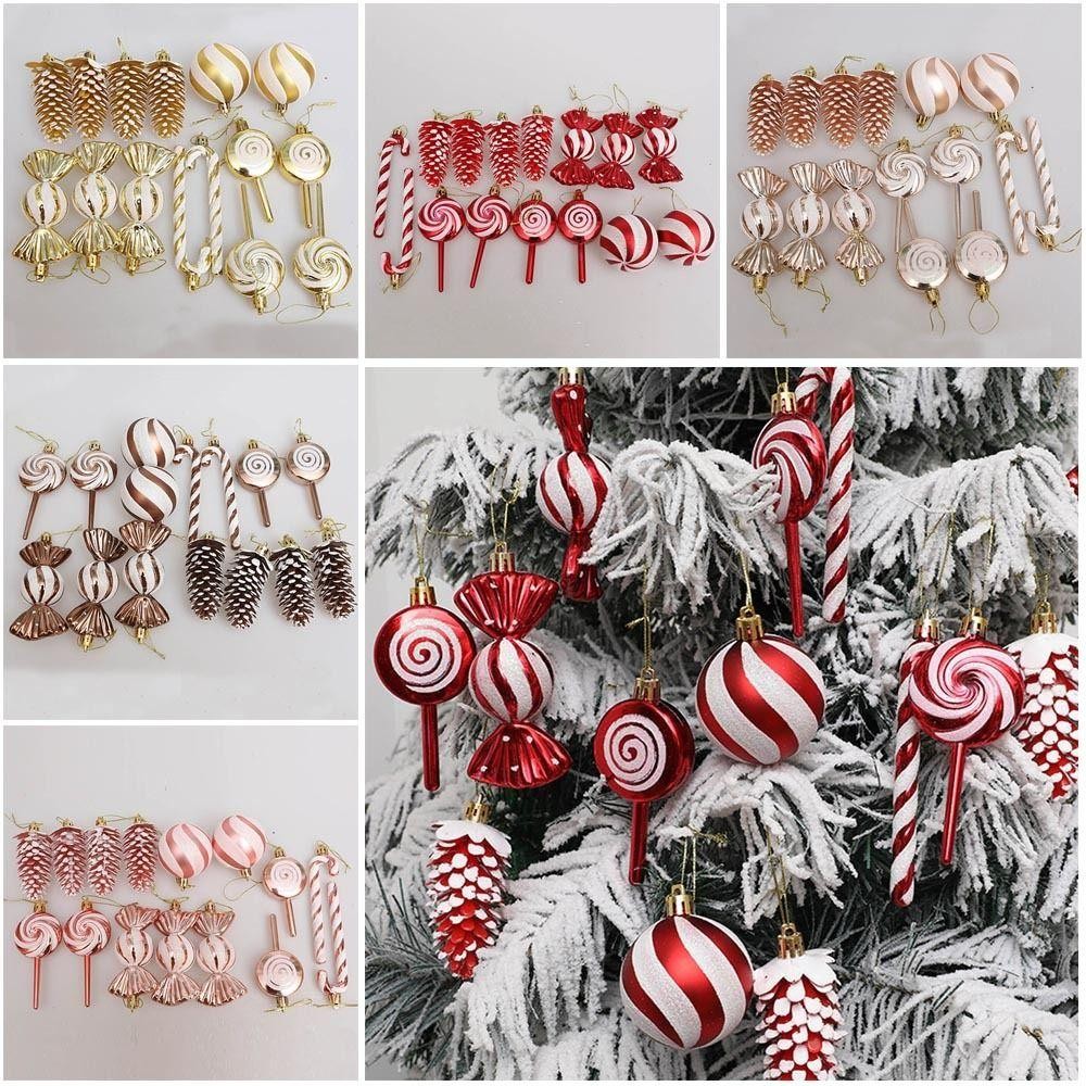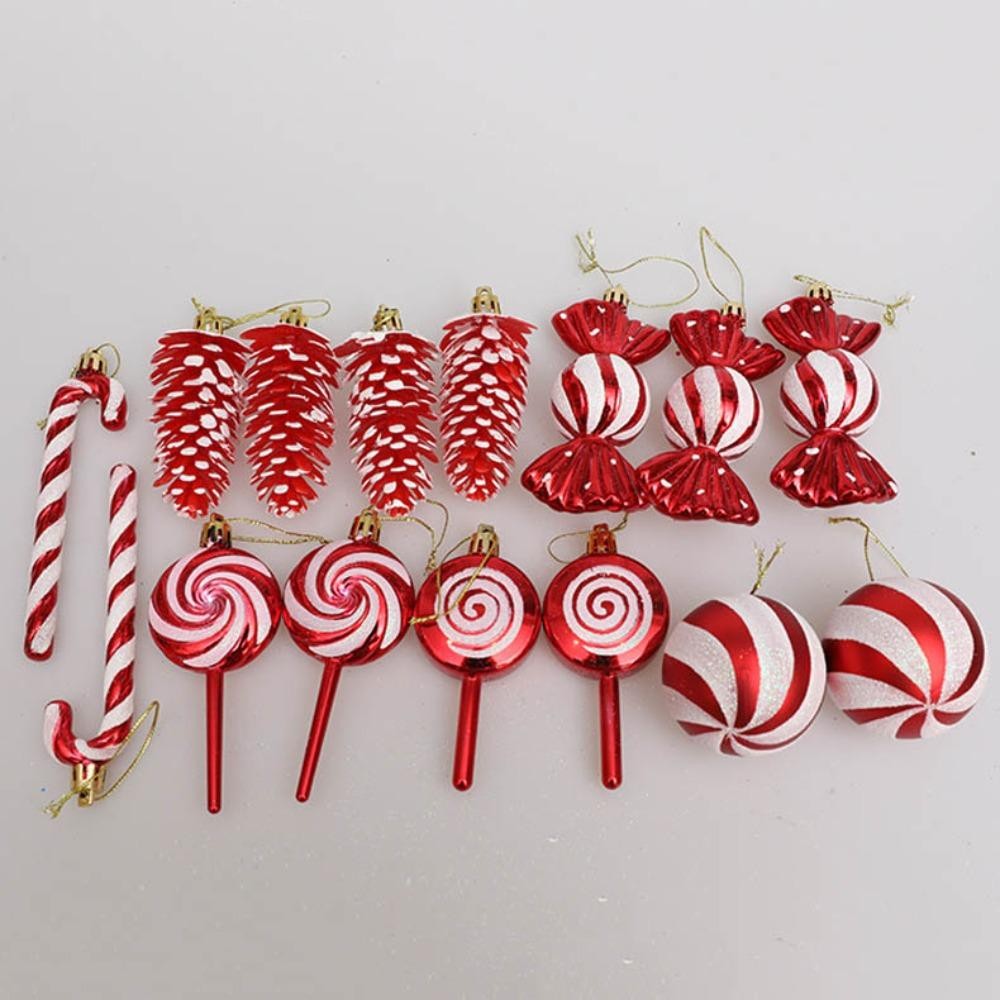 Avocar 15 ชิ้นจี้ต้นคริสต์มาส, Candy cane พลาสติกคริสต์มาสชุดเครื่องประดับ,แขวน Xmas Tree ทาสีของขวัญ Party Decor Ball ปี Noel Navidad ตกแต่ง