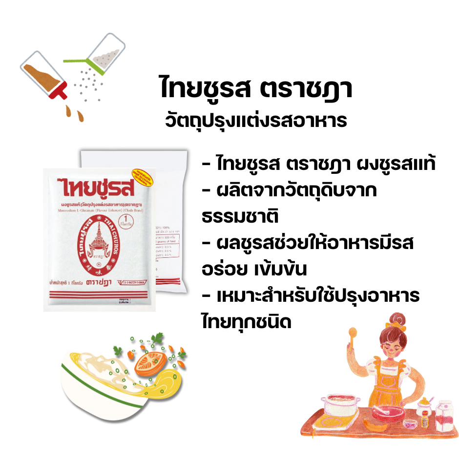 ไทยชูรส ตราชฎา ผงชูรส วัตถุปรุ่งแต่งรสอาหาร ขนาด 1 กิโลกรัม*//*แพ็ค 6 ซอง*//*