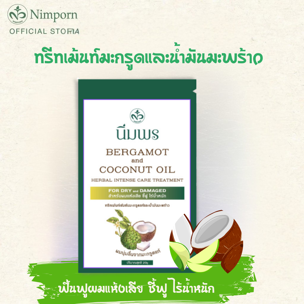 นิ่มพร ทรีทเม้นท์สมุนไพรเข้มข้นสูตรมะกรูดแท้และน้ำมันมะพร้าว (ซอง 20 มล.)