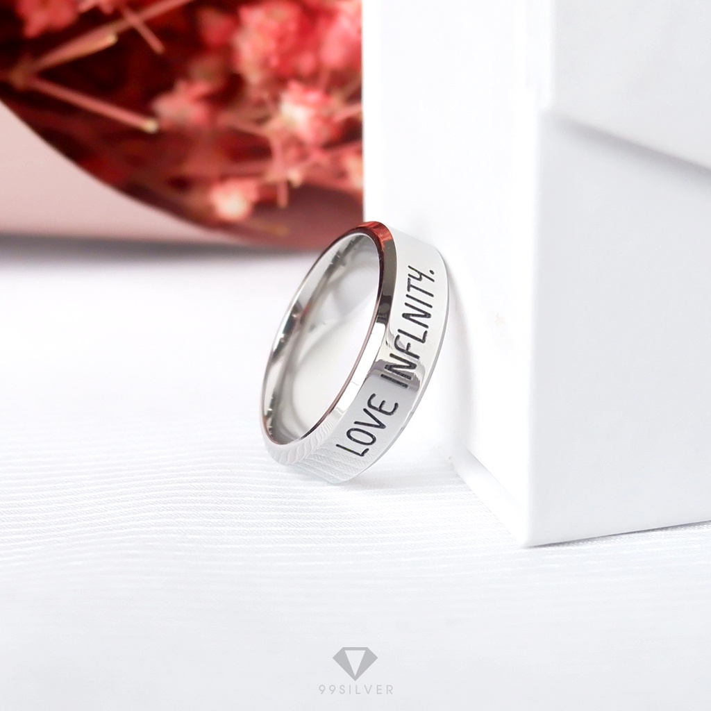 แหวนสแตนเลสแท้หน้ากว้าง 6 มิลลิเมตร ขอบลดมุมตัดสวยงาม ตัวเรือนสีเงินเงา (ได้1วง) (SL8)
