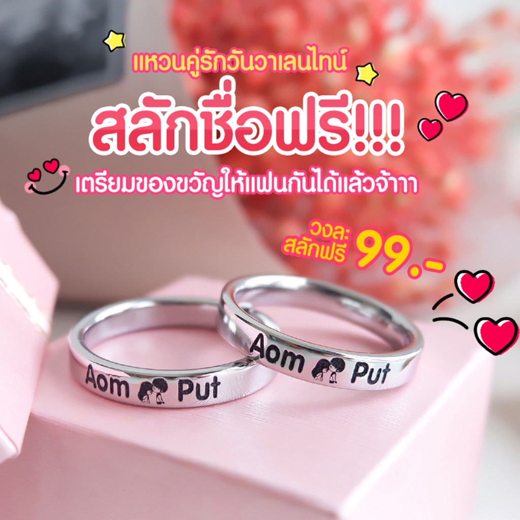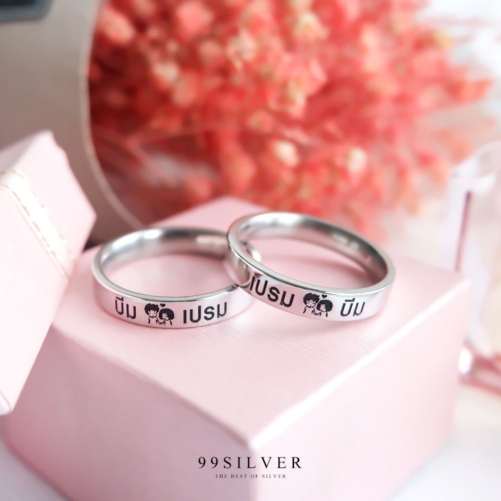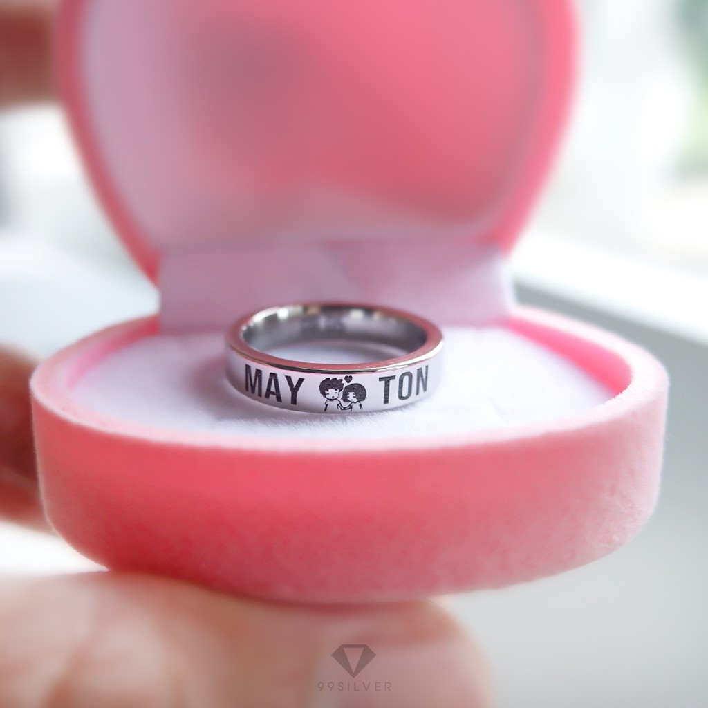 แหวนสลักชื่อ สลักฟรี ราคาถูก แถมกล่องแหวนฟรี เป็นสแตนเลสแท้ดีที่สุด หน้ากว้าง 4 มม. (ได้1วง) (SL1)