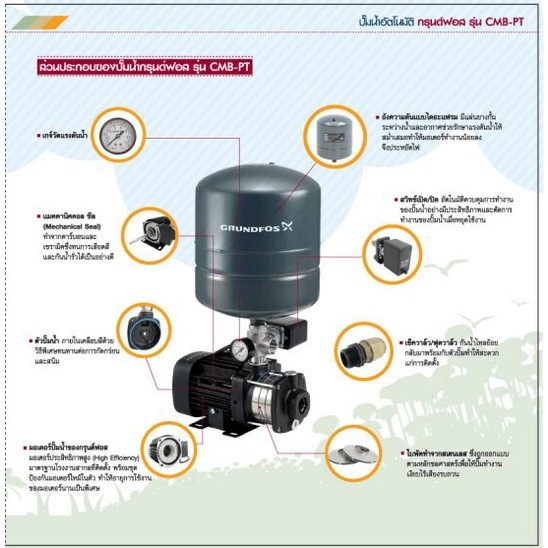 GRUNDFOS ปั๊มน้ำ AUTO กรุนด์ฟอส รุ่น CMB 5-37PT ปั๊มน้ำอัตโนมัติ แรงดันสูง ทนทาน ประหยัดพลังงาน สำหรับบ้านพัก รับประก...