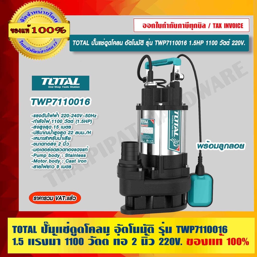 TOTAL ปั๊มแช่ดูดโคลน อัตโนมัติ รุ่น TWP7110016 มีลูกลอย 1.5 แรงม้า 1100 วัตต์ ท่อ 2 นิ้ว 220 โวลท์ ของแท้ 100% ร้านเป...