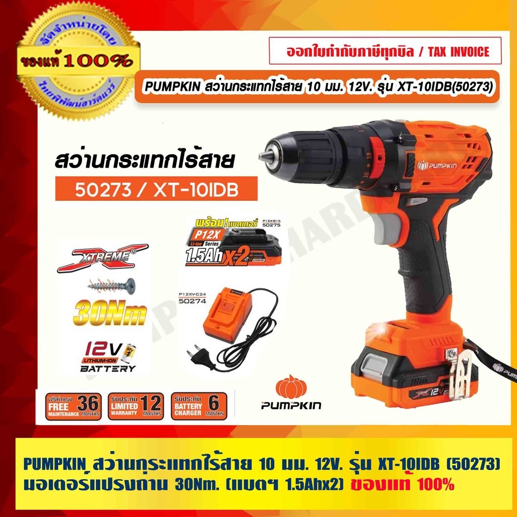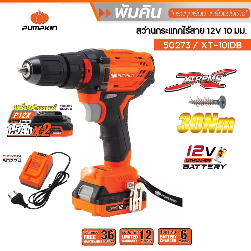 PUMPKIN สว่านกระแทกไร้สาย 10 มม. 12V. รุ่น XT-10IDB(50273) มอเตอร์แปรงถ่าน 30Nm. รับประกันศูนย์ 1 ปี (แบตฯ 1.5Ahx2) ข...