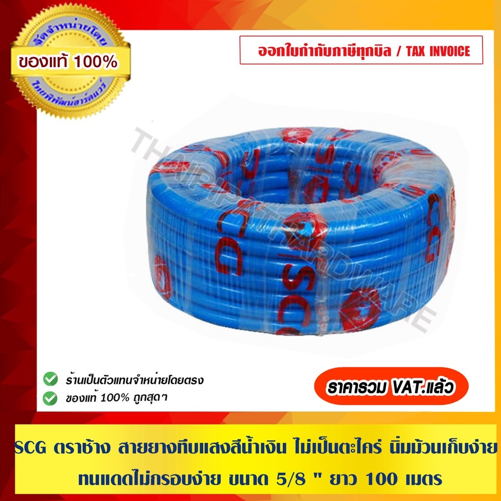 ตราช้าง สายยางทึบแสงสีน้ำเงิน ไม่เป็นตะไคร่ นิ่มม้วนเก็บง่าย ทนแดดไม่กรอบง่าย ขนาด 5/8 นิ้ว ยาว 100 เมตร