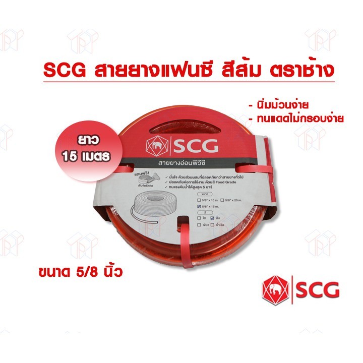 SCG สายยางแฟนซี สีส้ม ตราช้าง นิ่มม้วนง่าย ทนแดดไม่กรอบง่าย ขนาด 5/8 นิ้ว ยาว 15 เมตร ฟรี!! เข็มขัดรัดท่อ ของแท้ 100%...