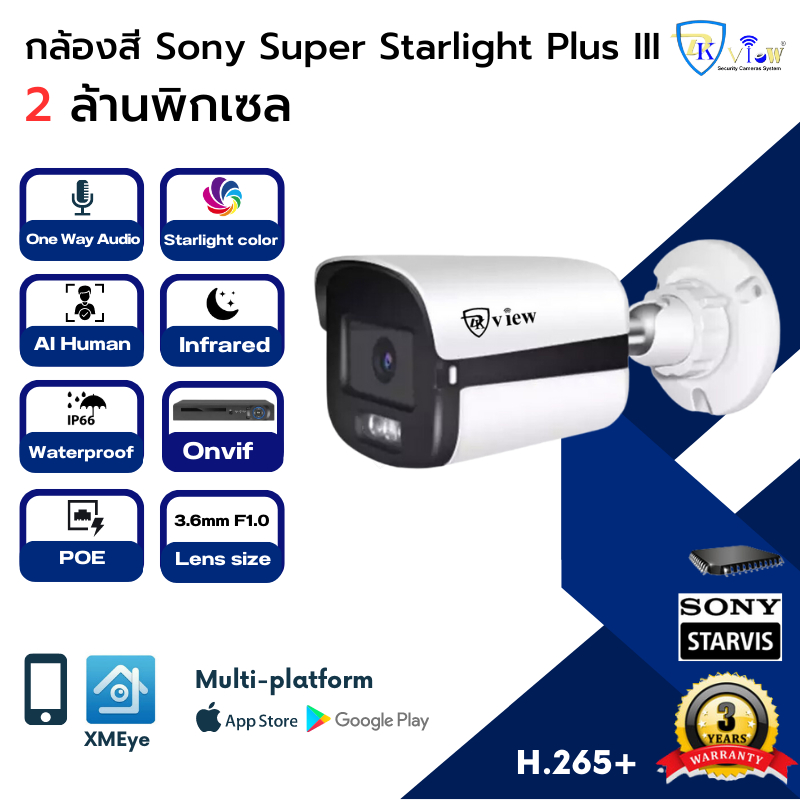 DKView กล้องสีกลางคืน Sony Super Starlight Plus III 2 ล้านพิกเซล-POE-AI(บันทึกเสียงได้)
