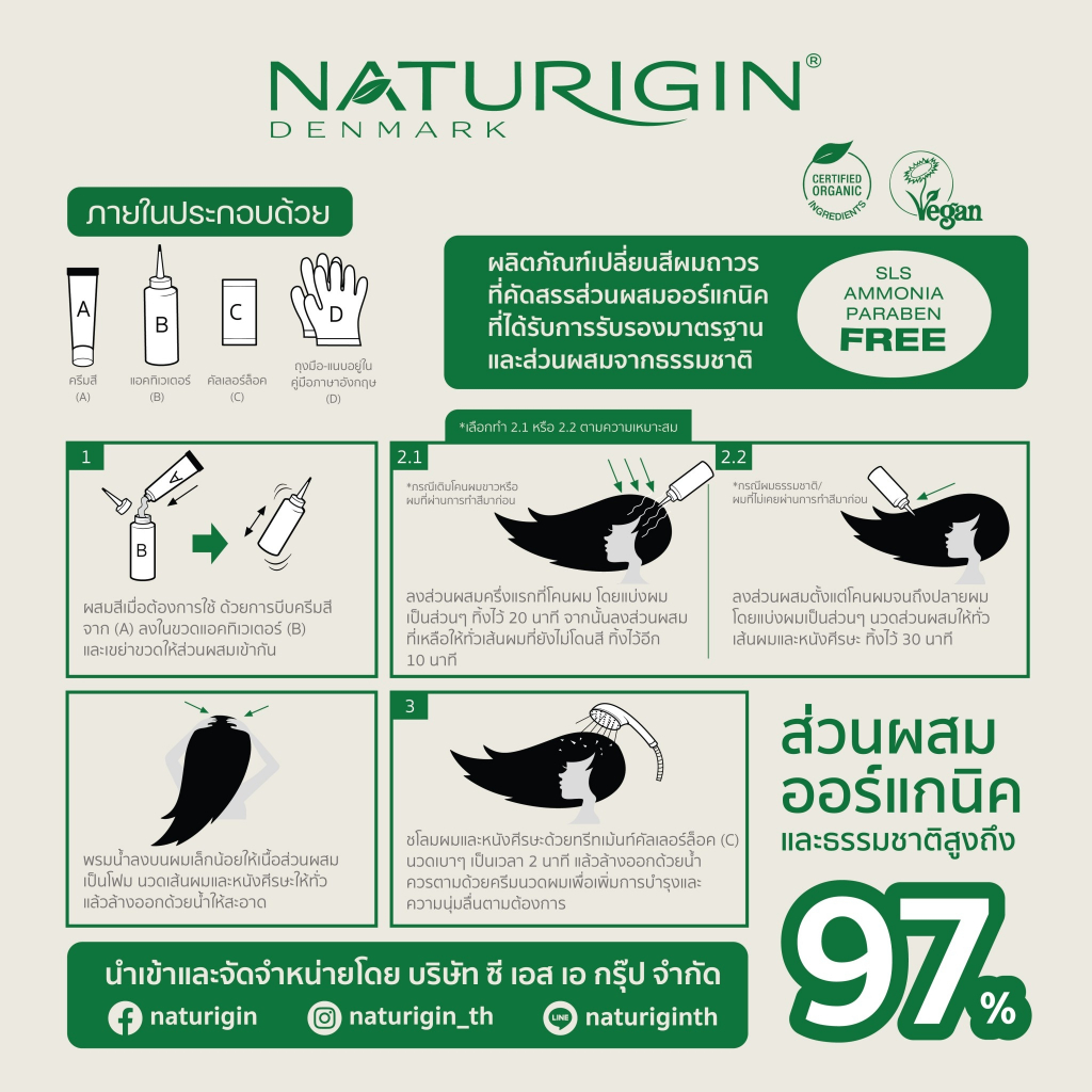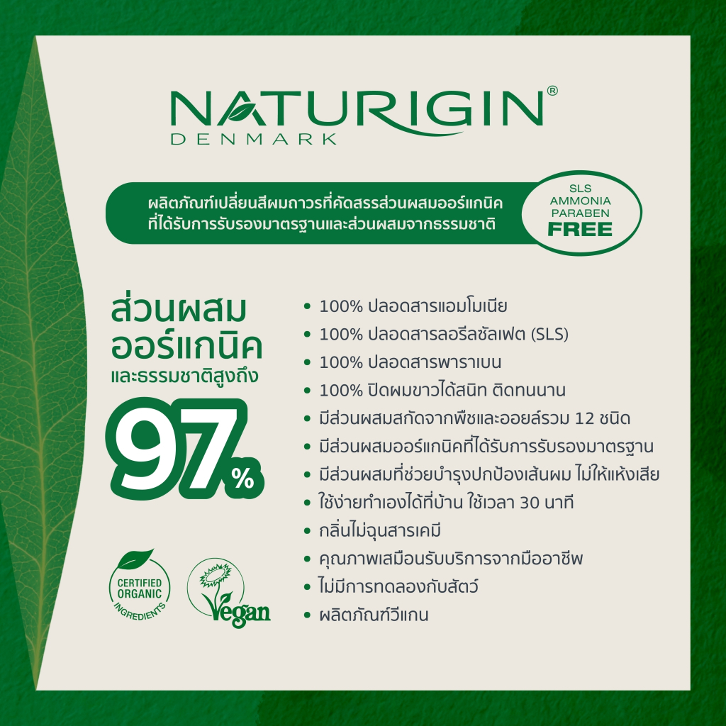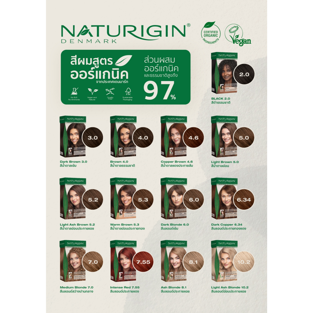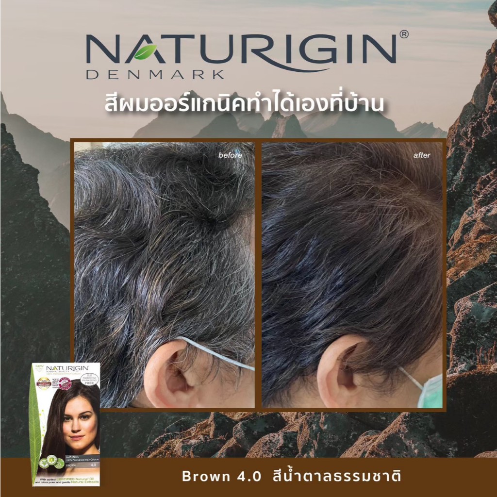 NATURIGIN Brown 4.0 สีน้ำตาลธรรมชาติ สีผมออร์แกนิค นำเข้าจากเดนมาร์ก ทำได้เองที่บ้าน