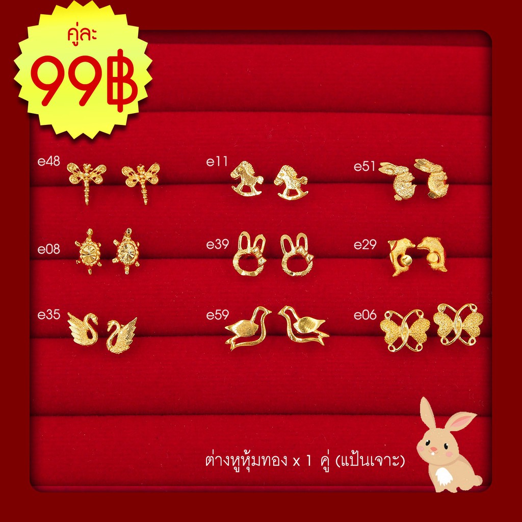 Sale!! ต่างหูทอง⚡ ต่างหูหุ้มทอง ชุบทอง 5 ไมครอน *เก็บปลายทางได้* เซตแป้นเจาะ ต่างหูแป้น