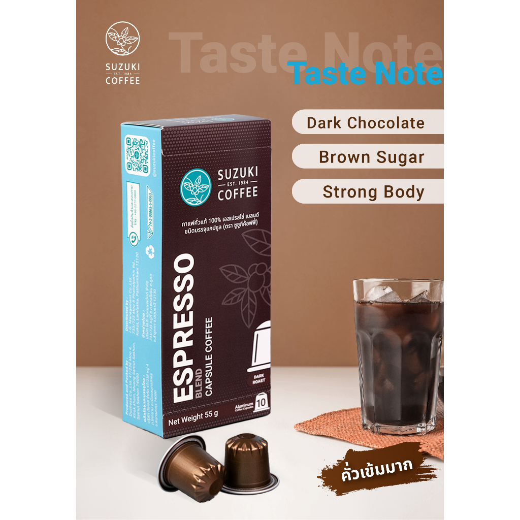 (10 แคปซูล) กาแฟแคปซูล คั่วเข้มมาก Espresso Blend SUZUKI COFFEE