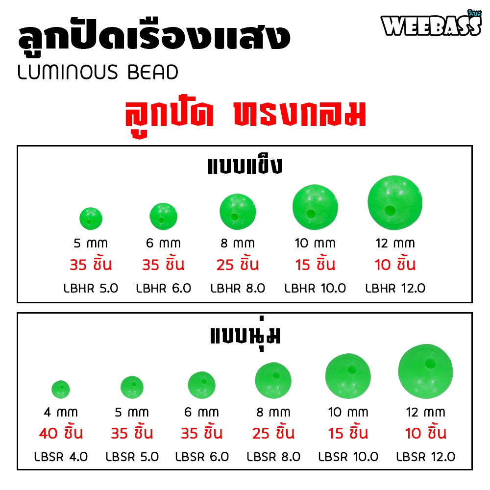 WEEBASS ลูกปัด - รุ่น LUMINOUS BEAD ลูกปัดตกปลา ลูกปัดเรืองแสง ลูกปัดยาง (แบบซอง)