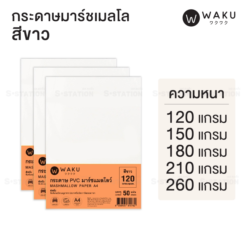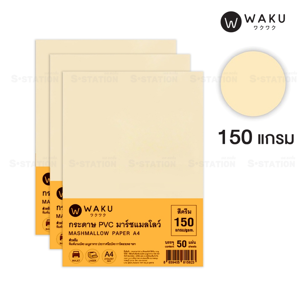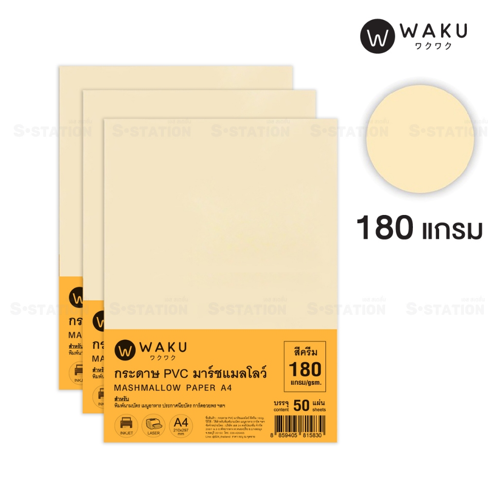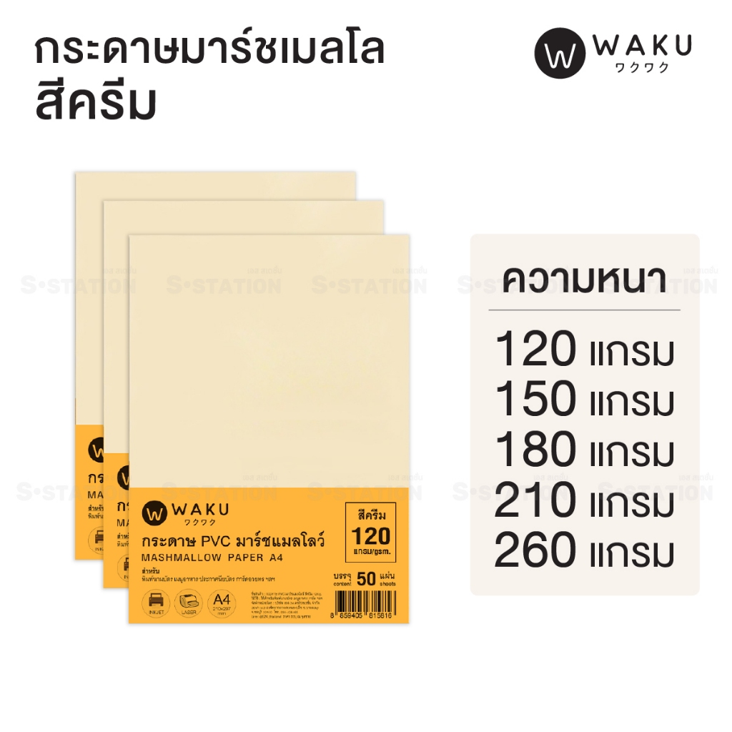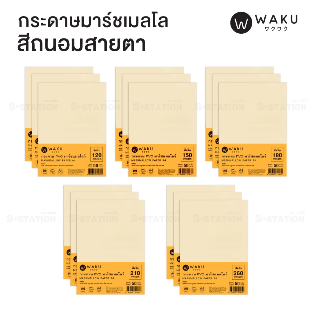 กระดาษ PVC มาร์ชเมลโลว์ A4 เนื้อญี่ปุ่น (แพ็ค 50 แผ่น) สีขาว / สีครีม Marshmallow