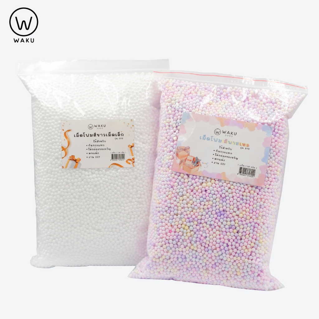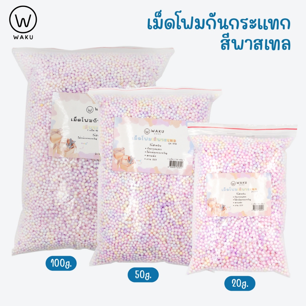 WAKU เม็ดโฟมกันกระแทก สีพาสเทล / สีขาว สำหรับใส่กล่องของขวัญ ตกแต่งงาน DIY