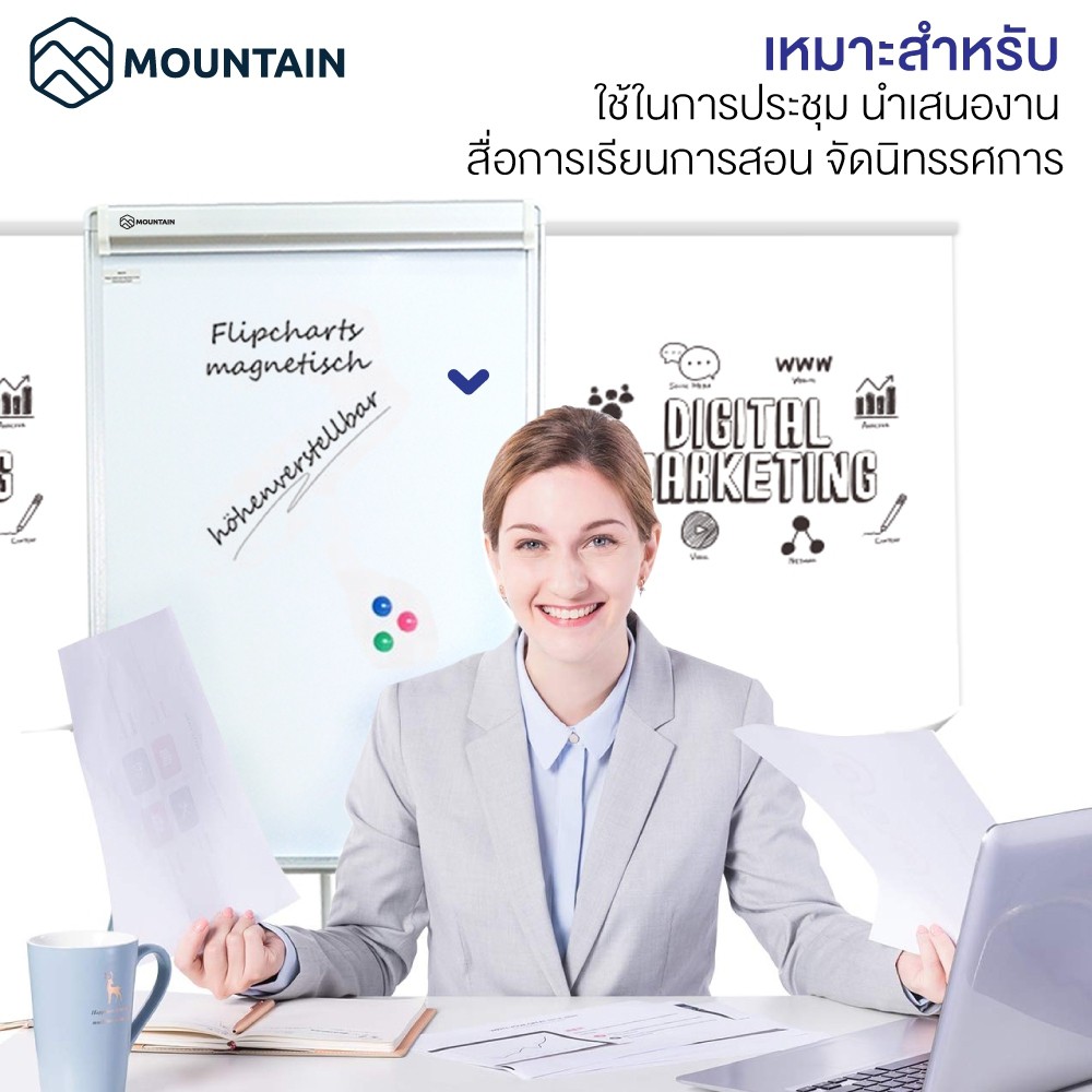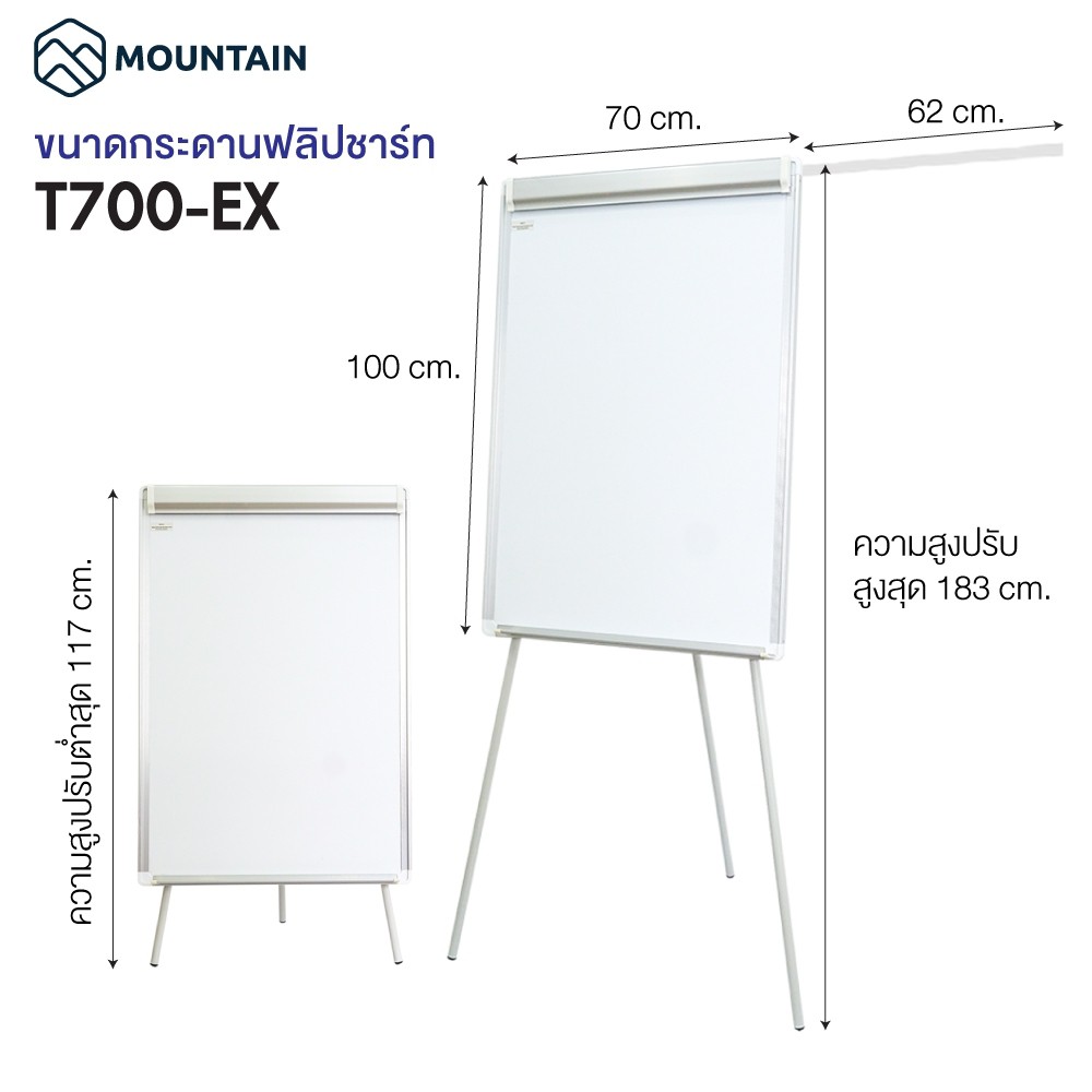กระดานฟลิปชาร์ท แบบสามขา มีแขนเหล็ก Flipchart Mountain T700-EX (70x100 cm.) กระดานไวท์บอร์ดแม่เหล็ก