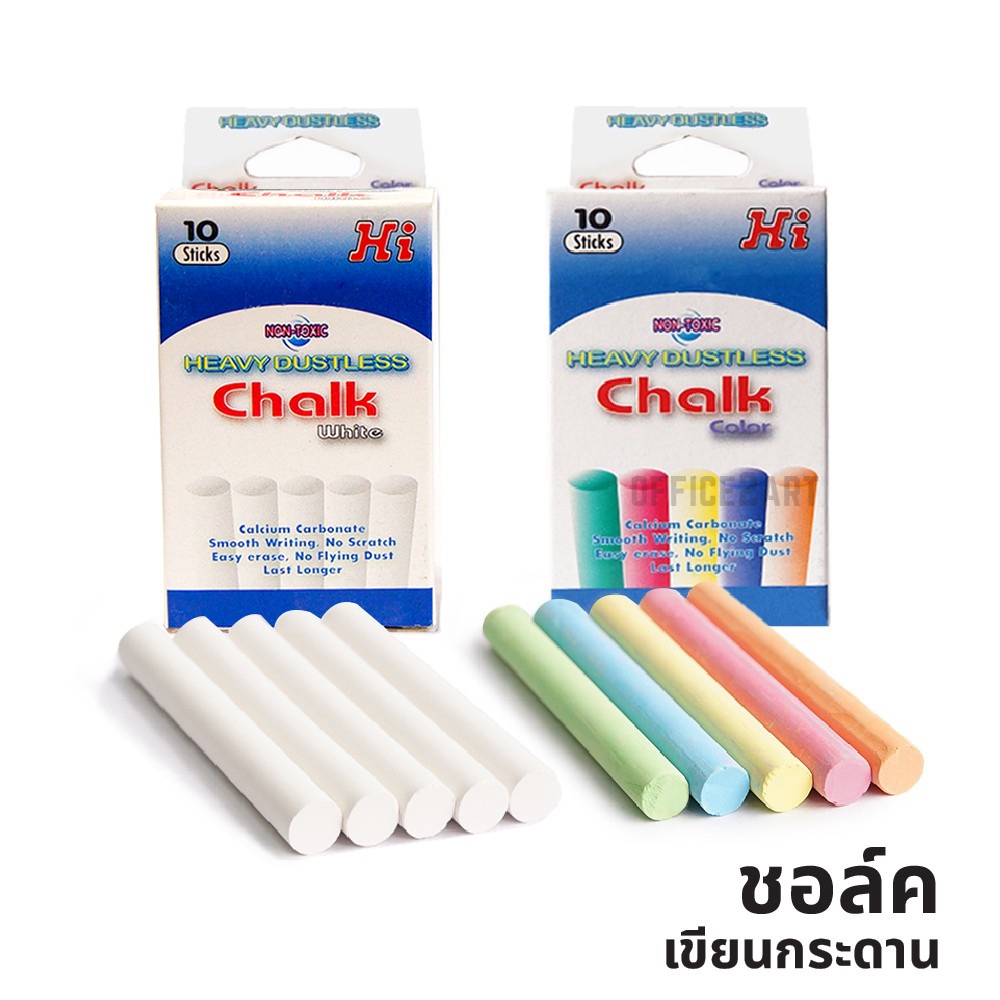 ชอล์กขาว ชอล์กสี ชอล์กเขียนกระดาน ชอล์ค รุ่นไร้ฝุ่น ชอล์กกระดานดำ กระดานเขียว HI CHALK (1 กล่อง) [S24]
