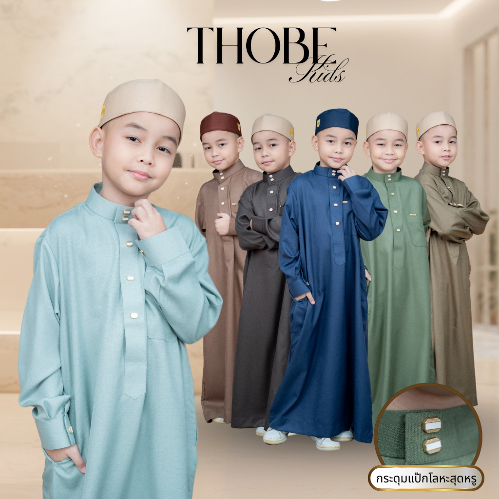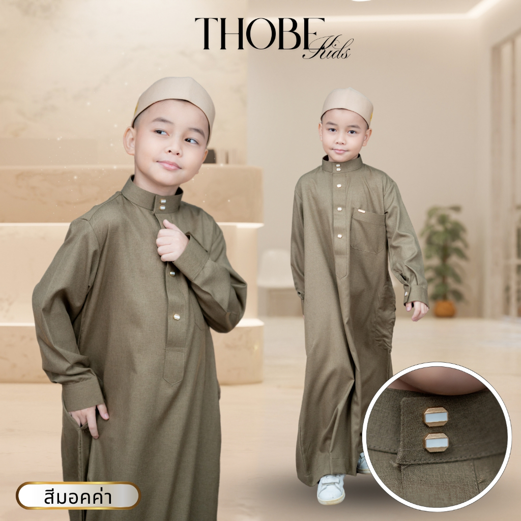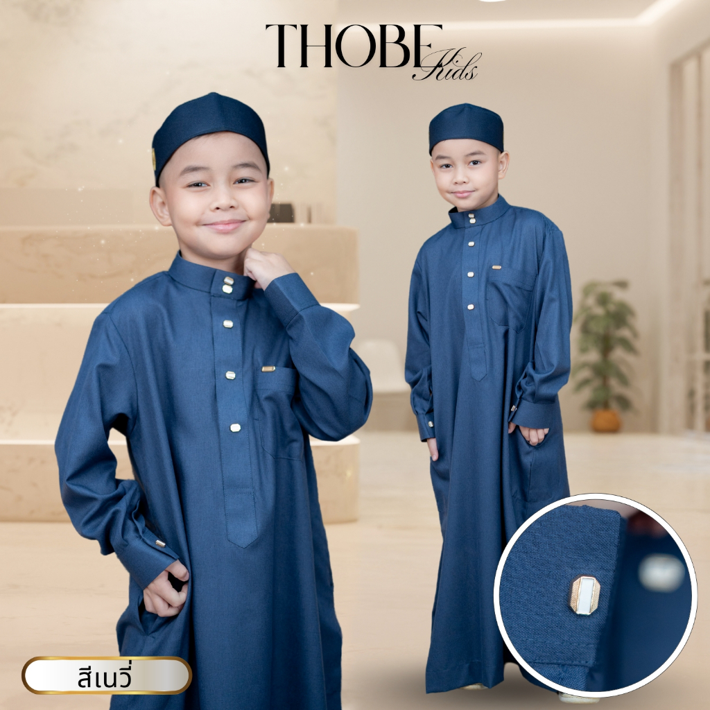 โต๊ปเด็กแขนยาวสุดหรู เนื้อผ้าคอตตอนเกรดพรีเมี่ยม พร้อมกระดุมแป๊กเป็นโลหะสีทองดูแพง BA55วาริสมุสลิม