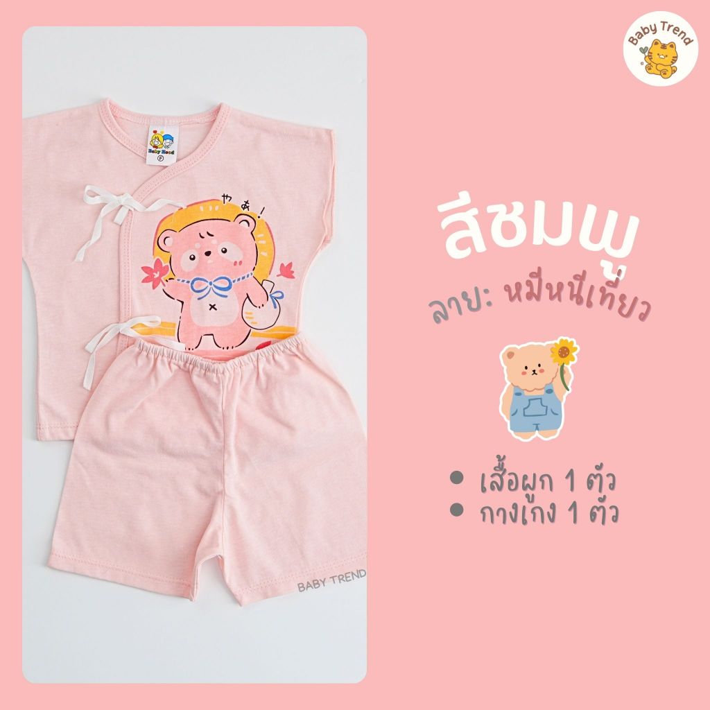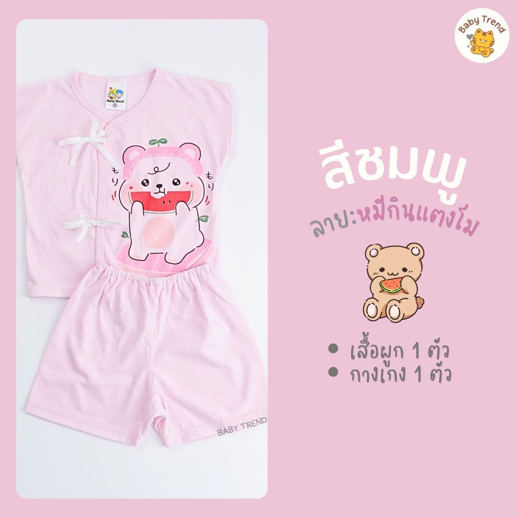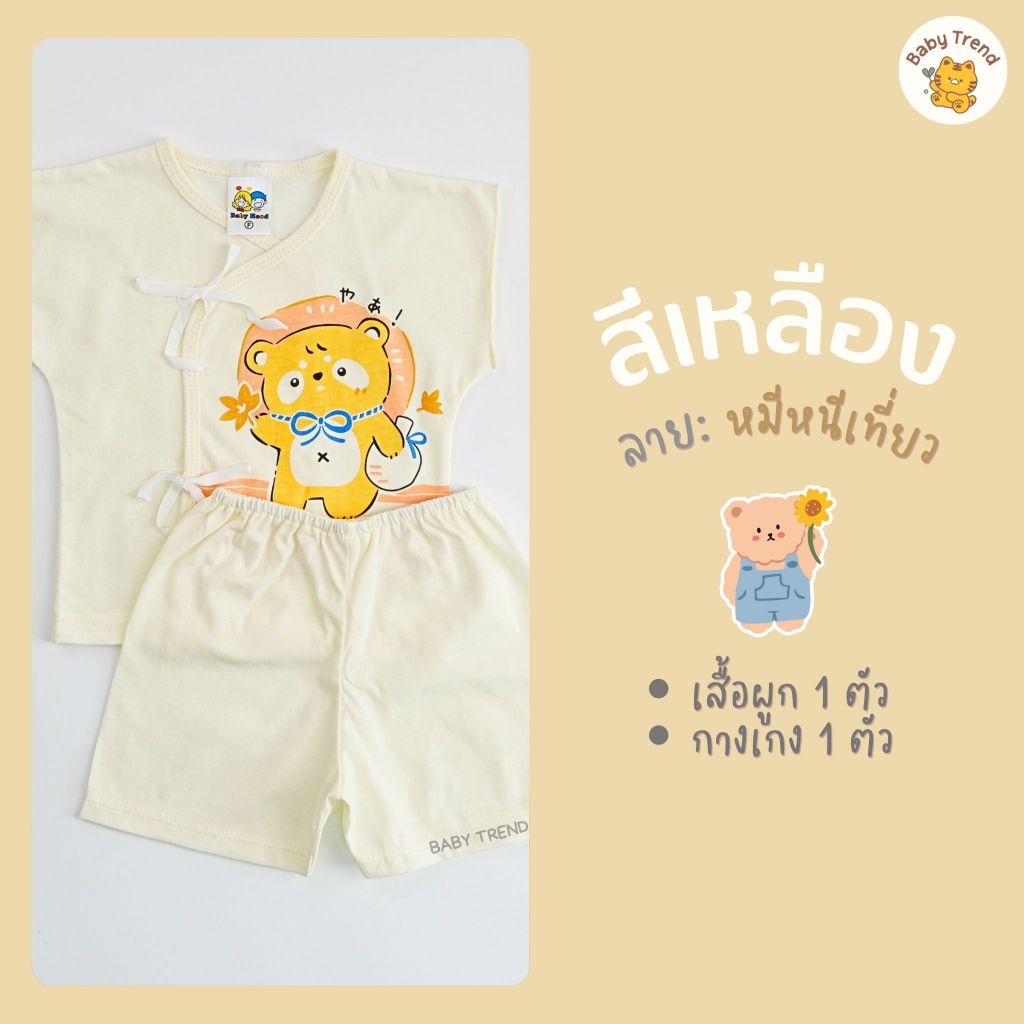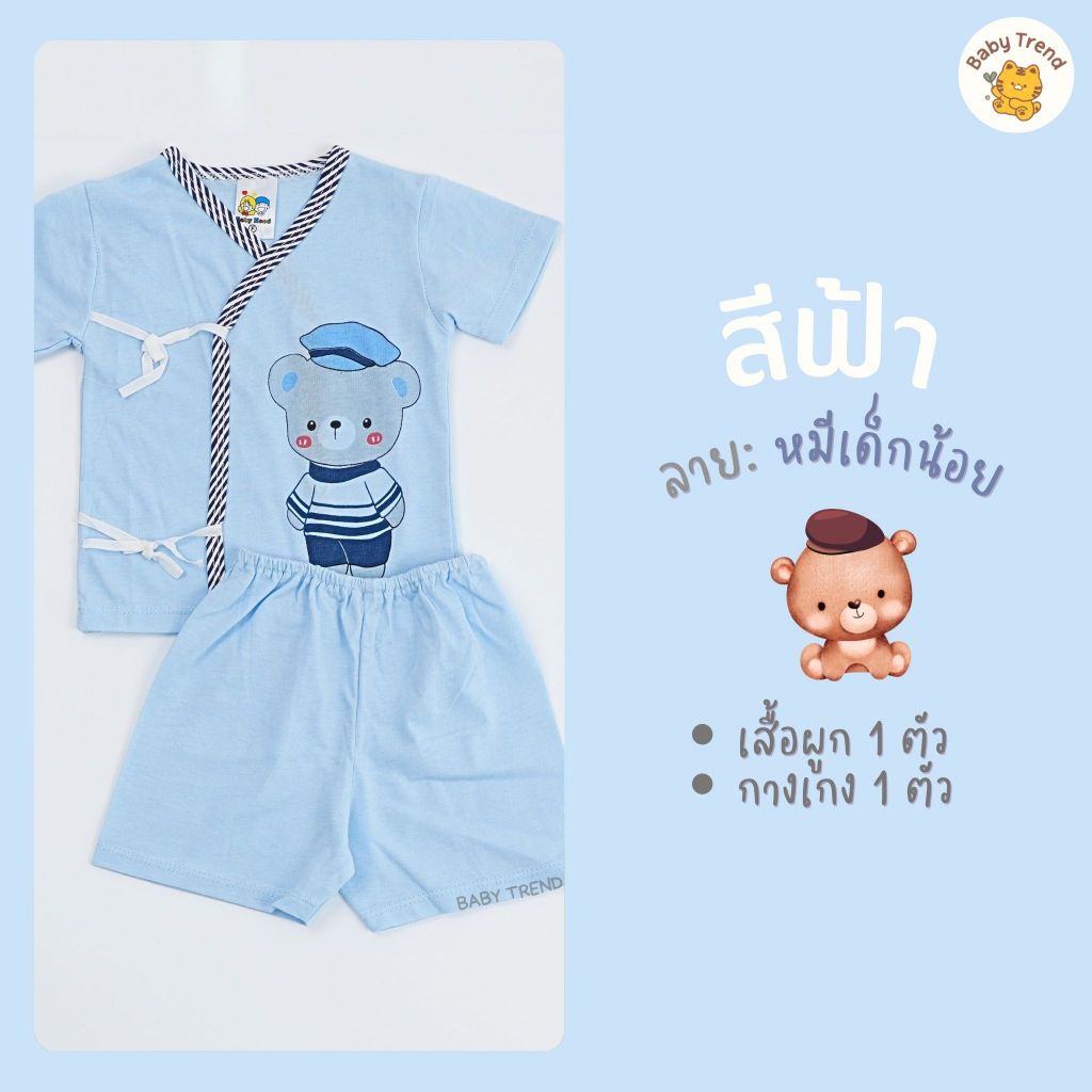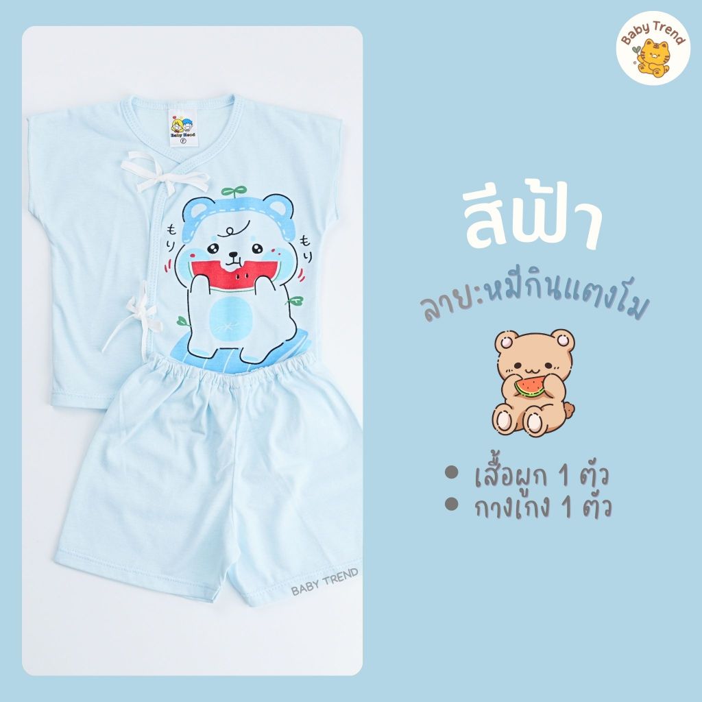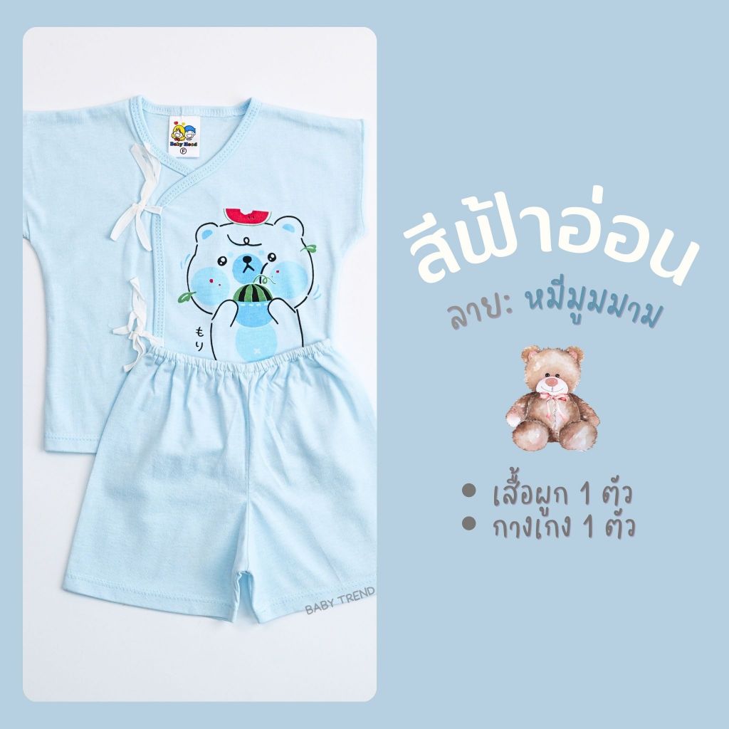 Babyhood เสื้อผูกหน้าแขนสั้นกางเกงขาสั้นเด็ก 0-3 เดือน ชุดเด็กแรกเกิดผ้าคอตตอน (1 ชุด) | Babytrend