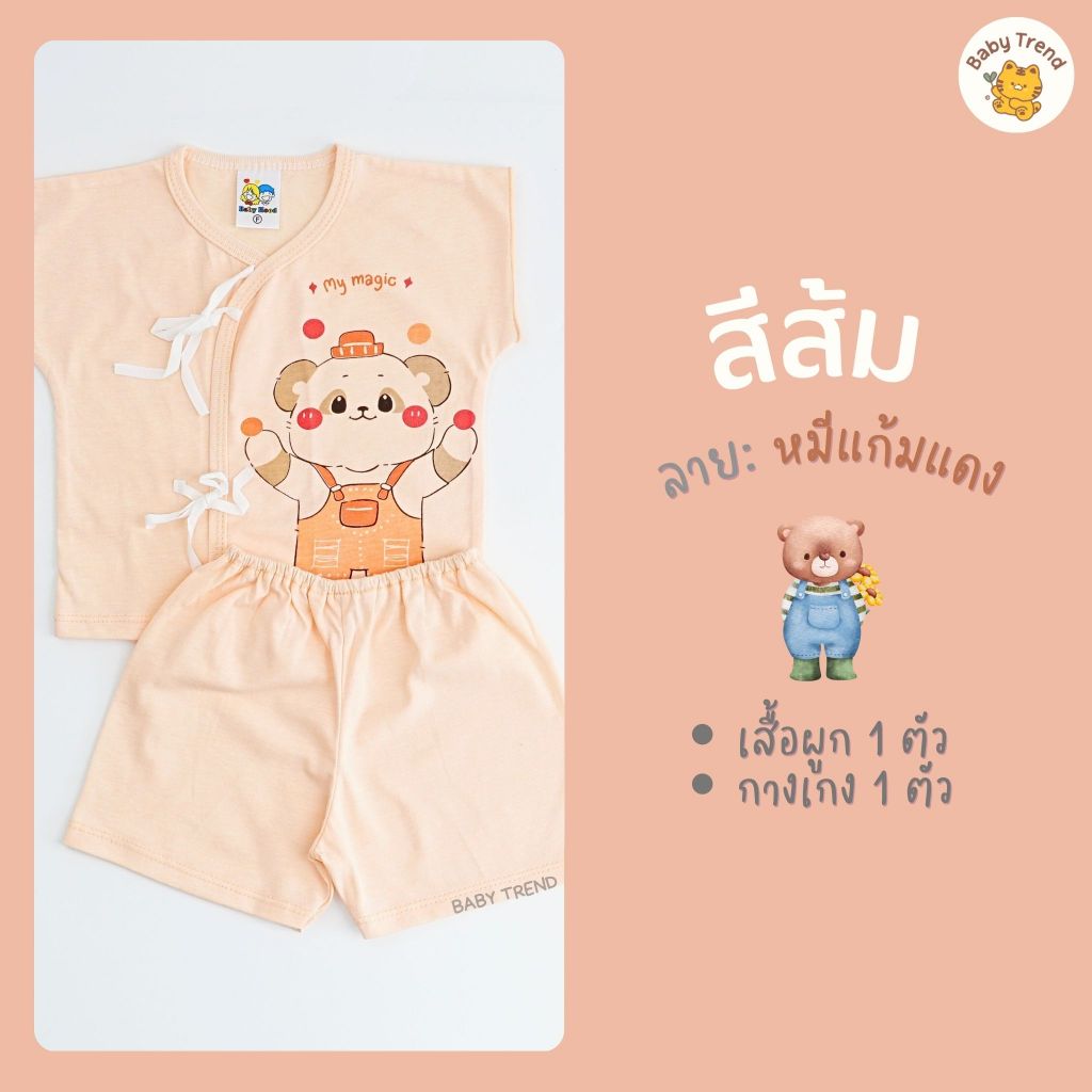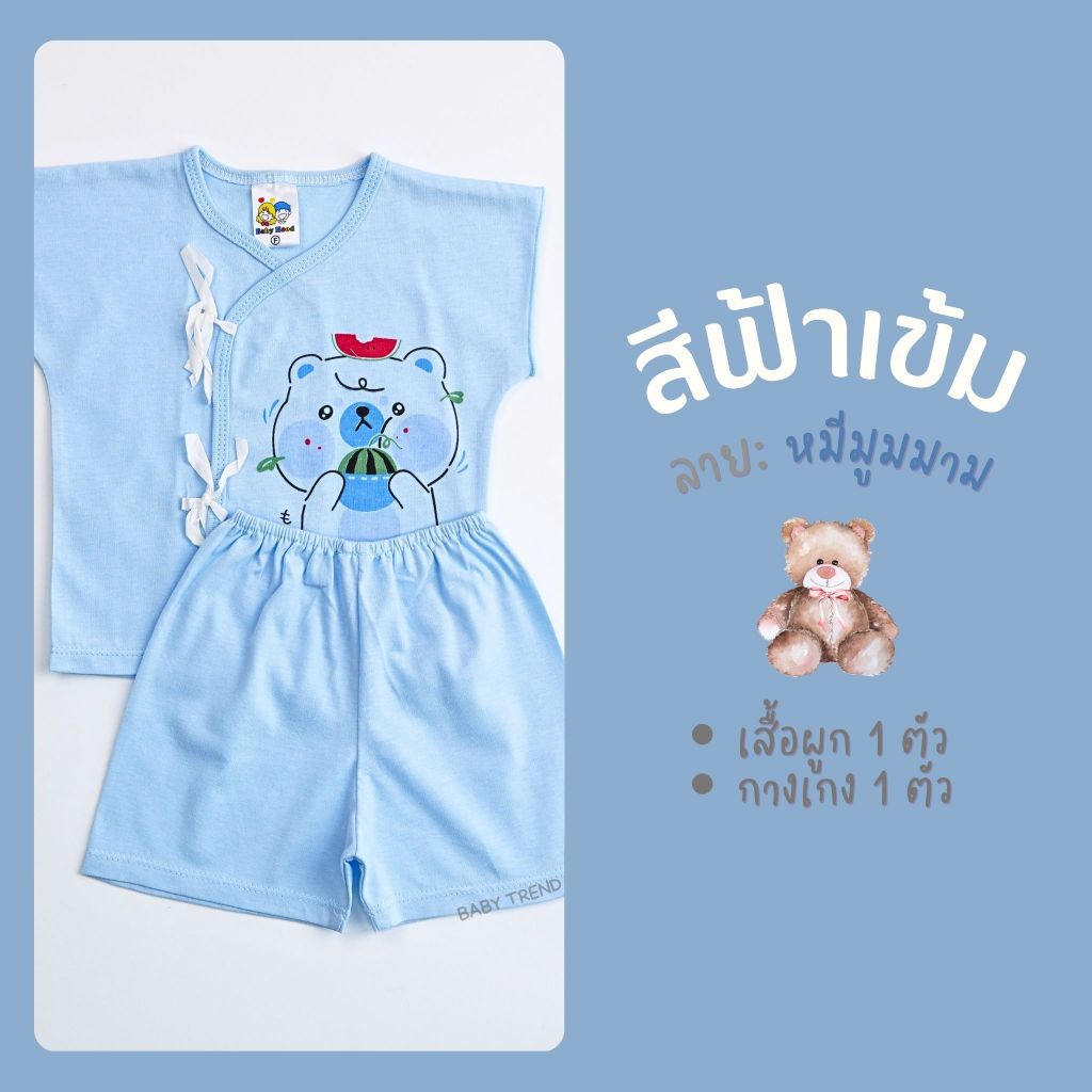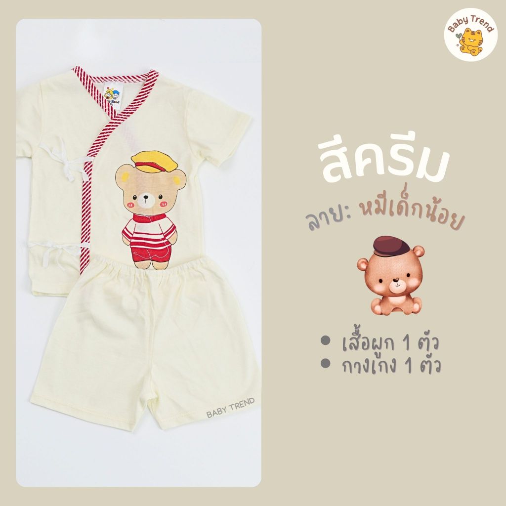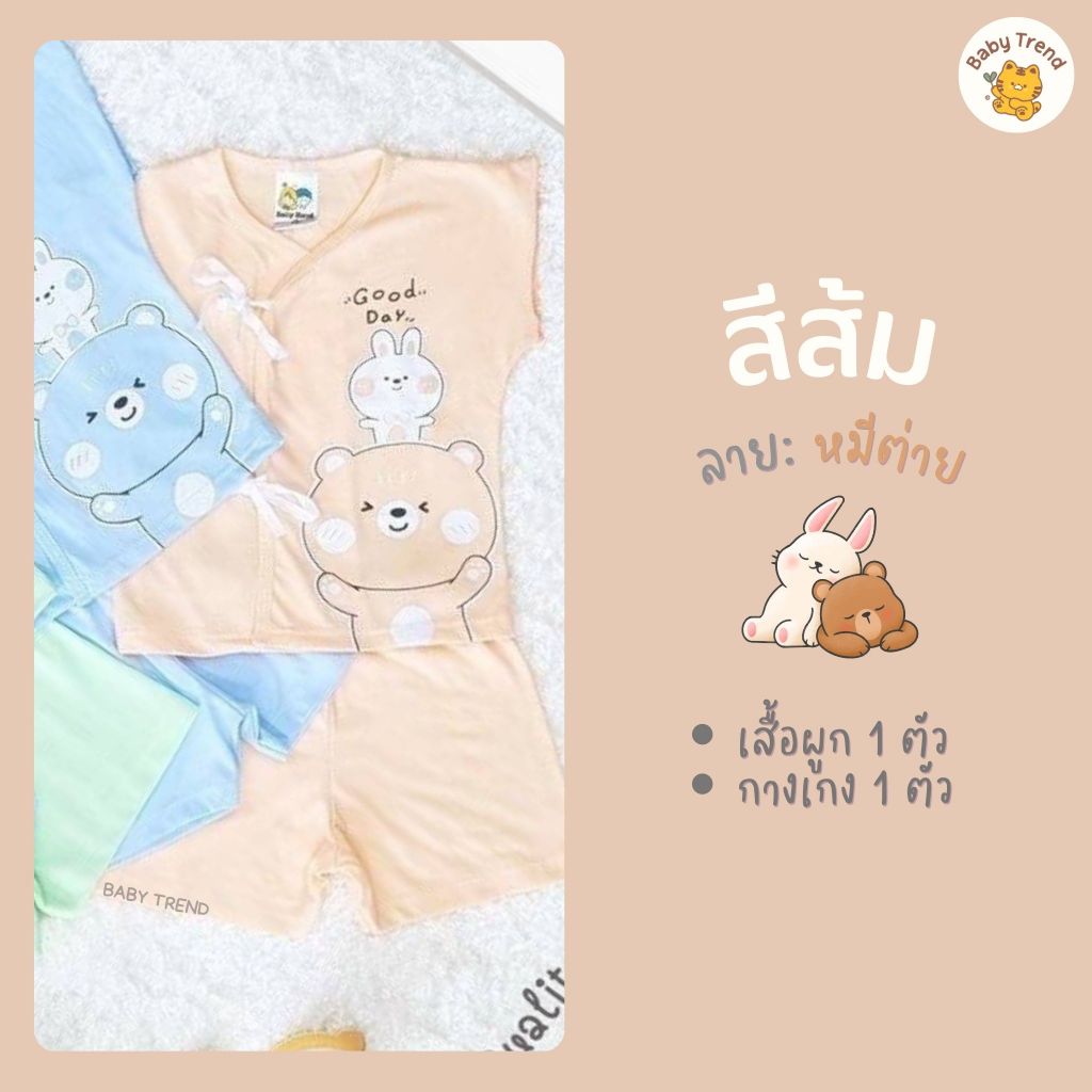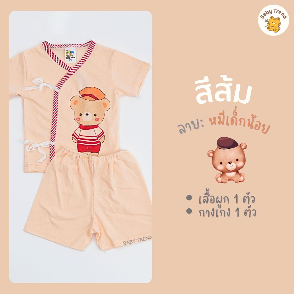 Babyhood เสื้อผูกหน้าแขนสั้นกางเกงขาสั้นเด็ก 0-3 เดือน ชุดเด็กแรกเกิดผ้าคอตตอน (1 ชุด) | Babytrend