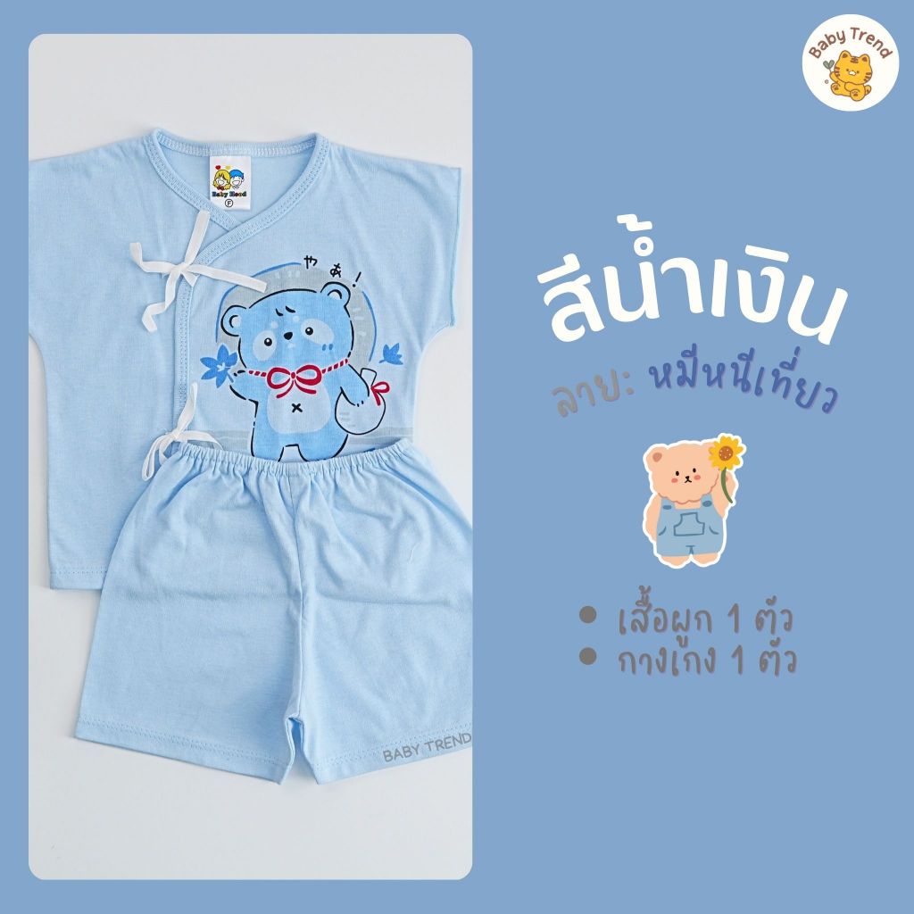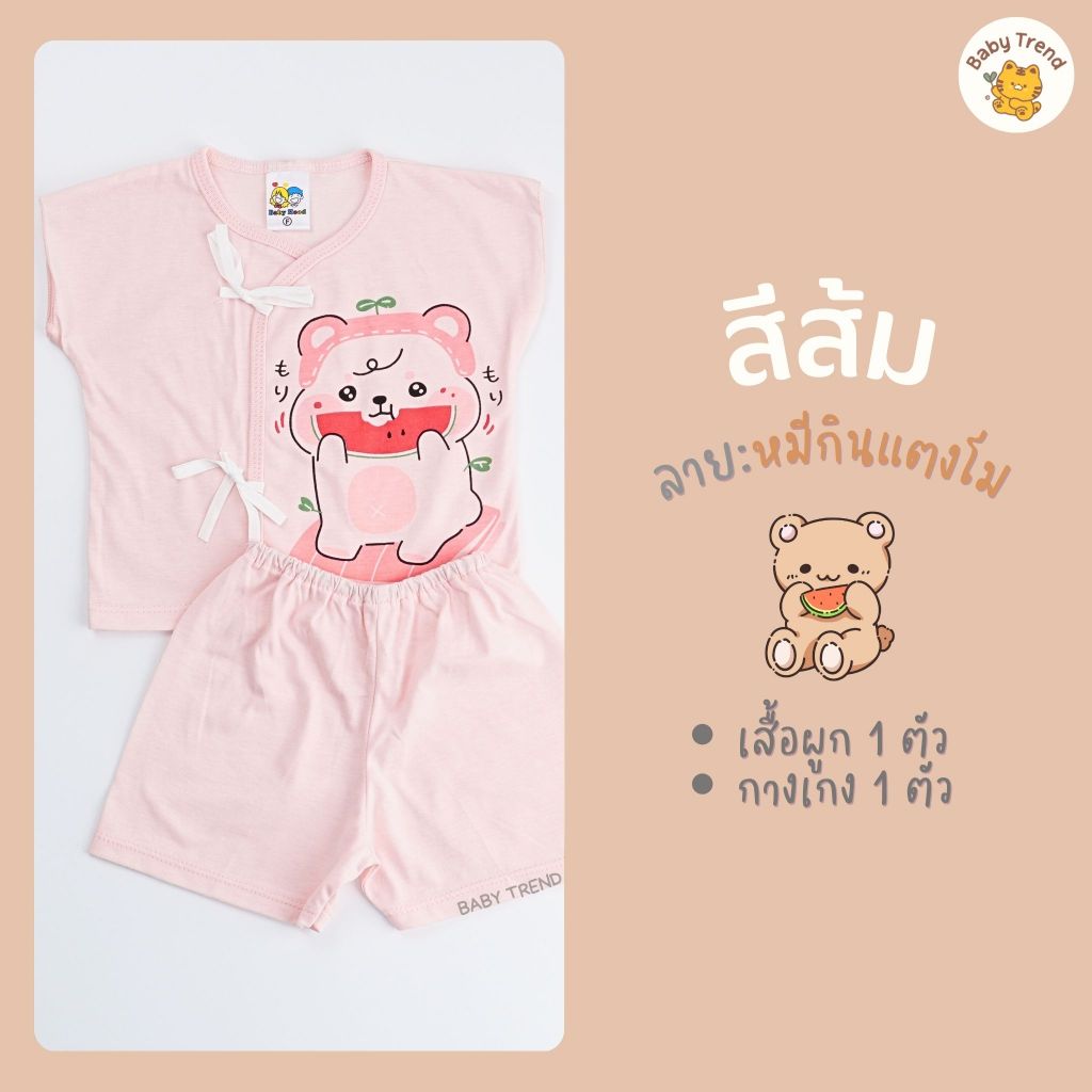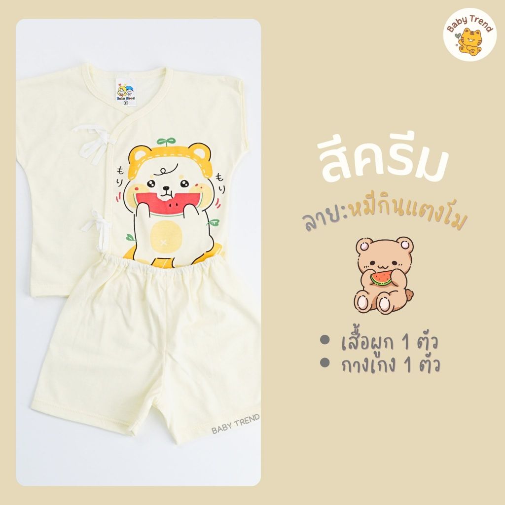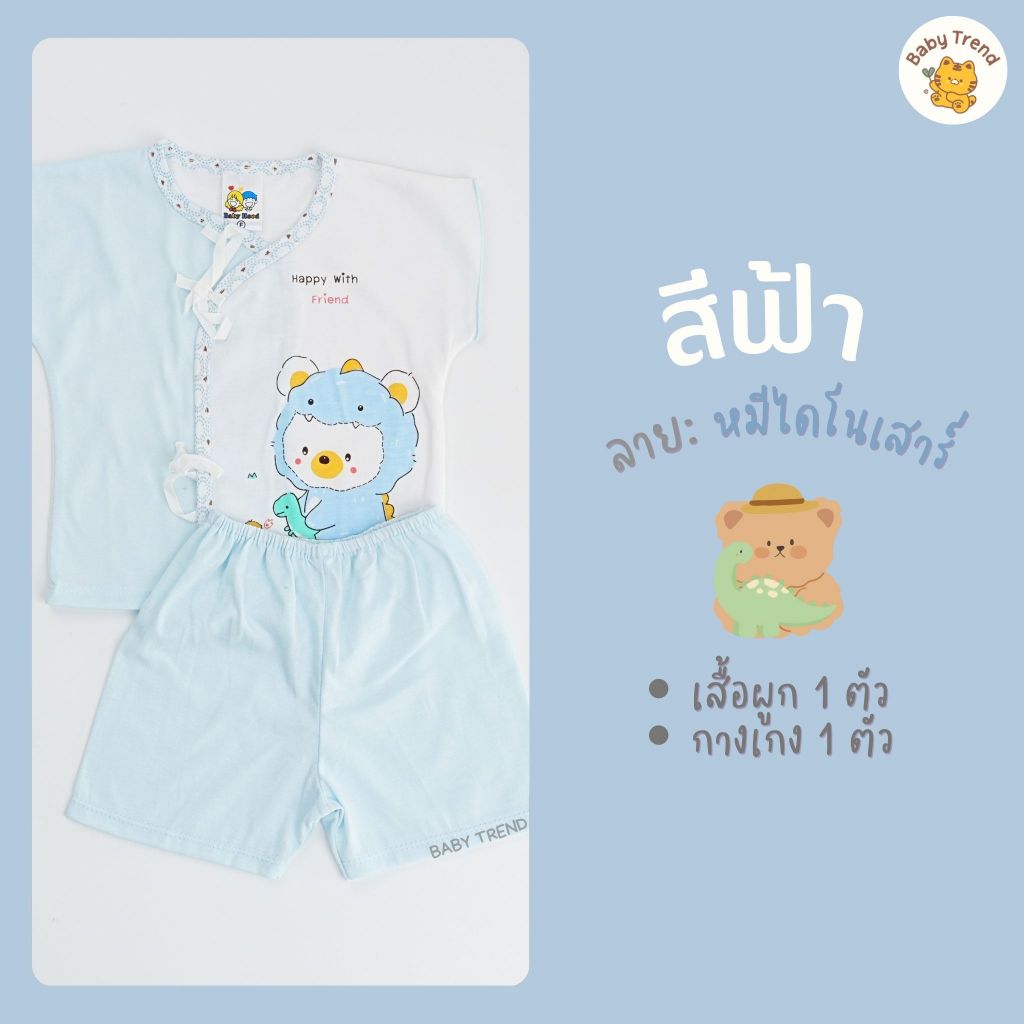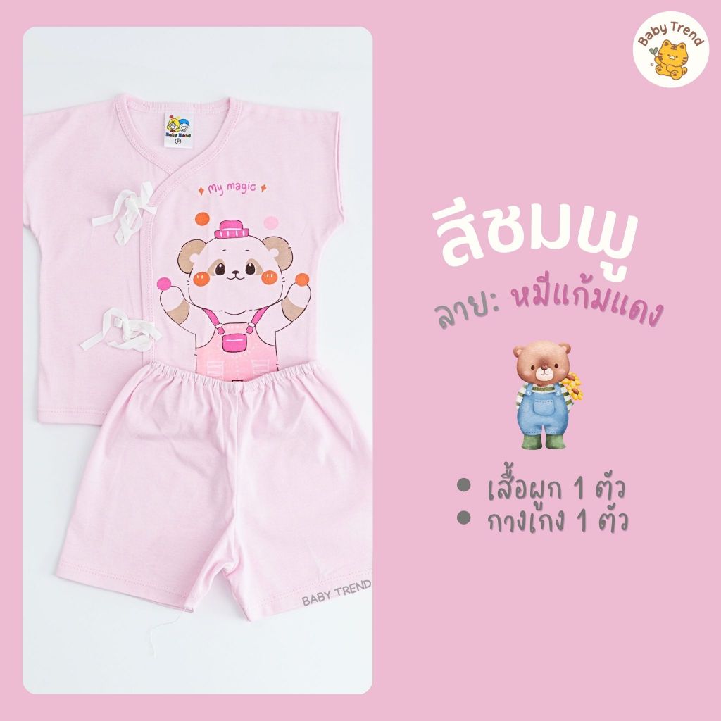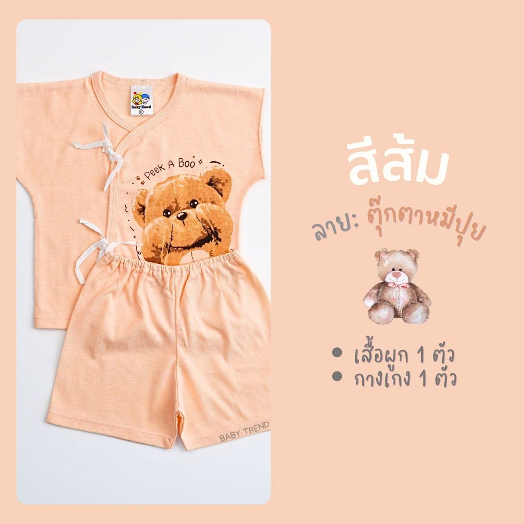 Babyhood เสื้อผูกหน้าแขนสั้นกางเกงขาสั้นเด็ก 0-3 เดือน ชุดเด็กแรกเกิดผ้าคอตตอน (1 ชุด) | Babytrend