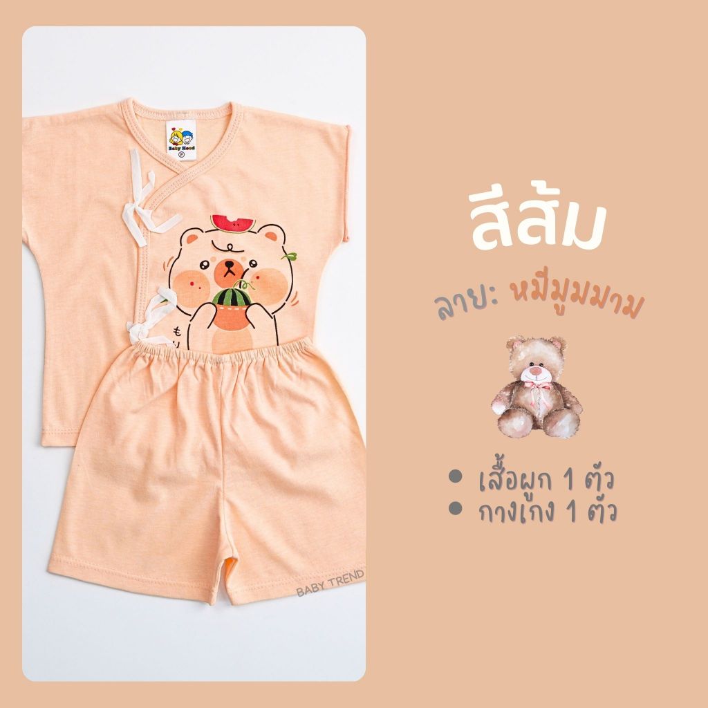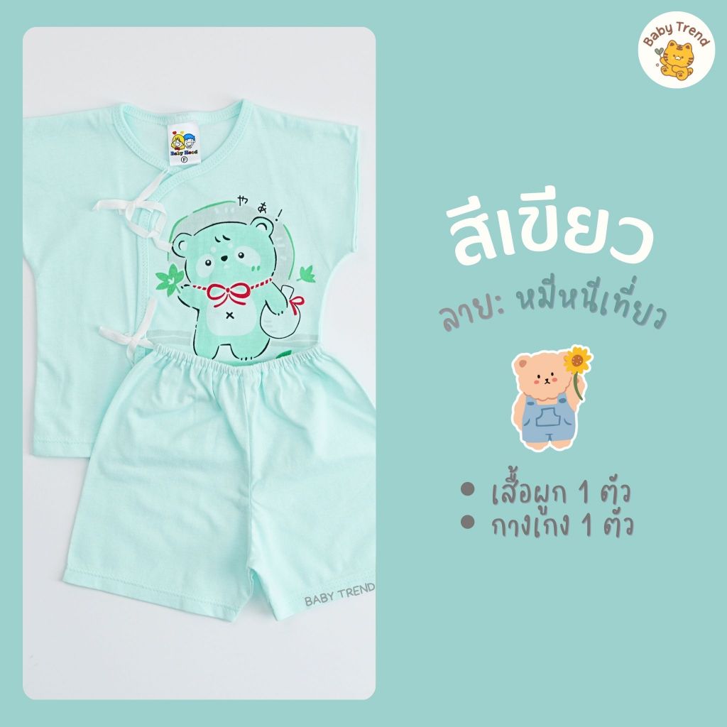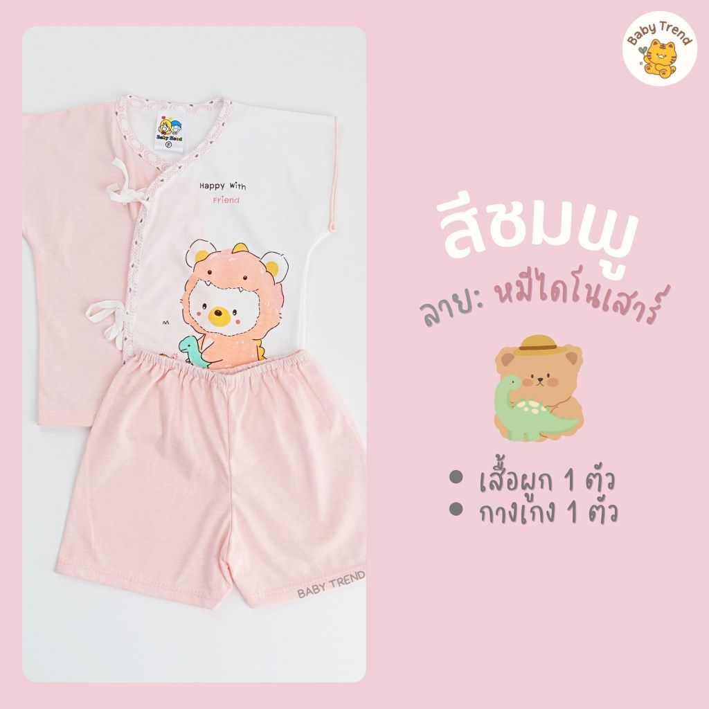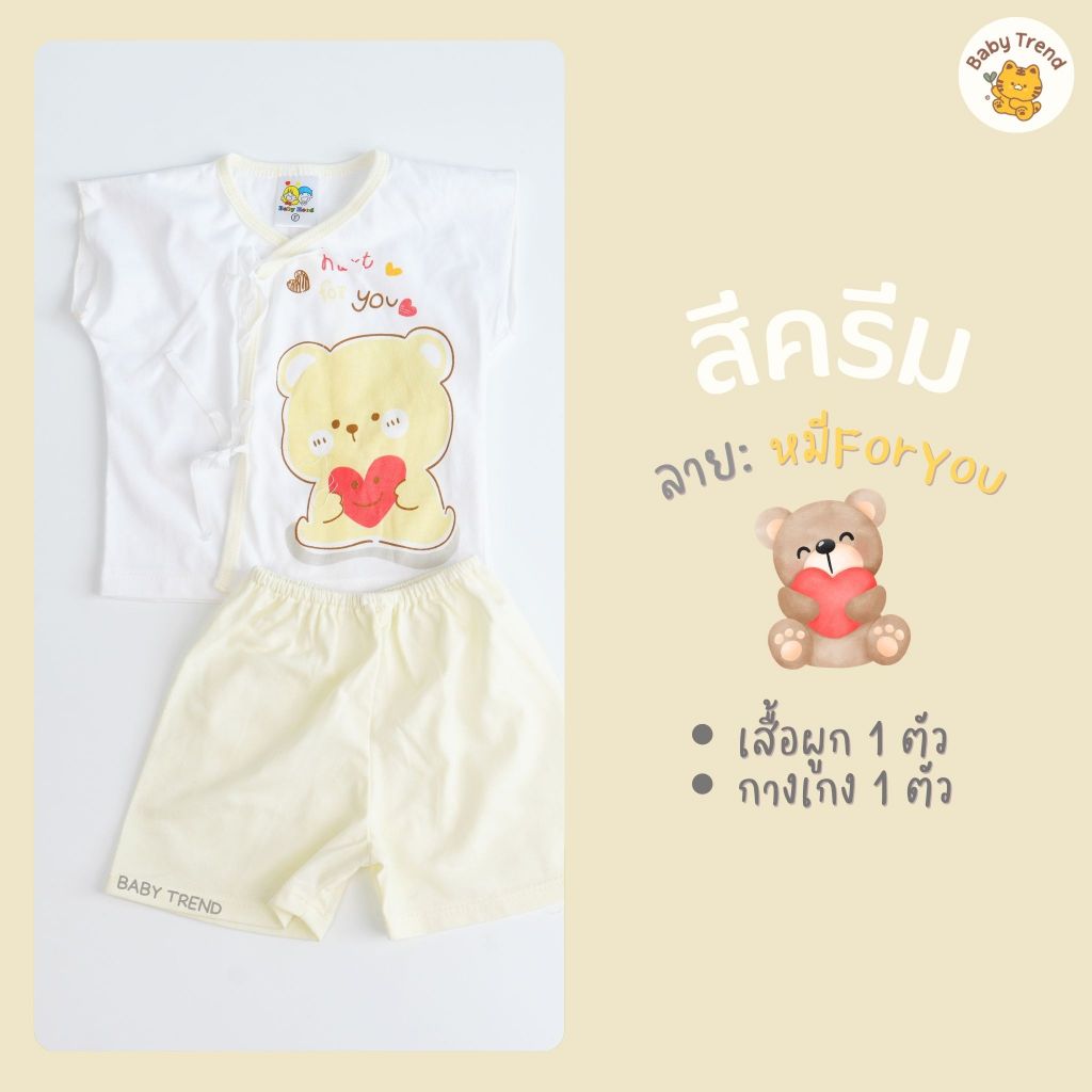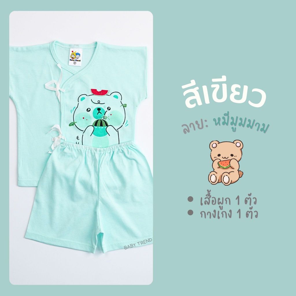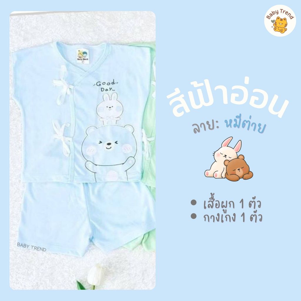 Babyhood เสื้อผูกหน้าแขนสั้นกางเกงขาสั้นเด็ก 0-3 เดือน ชุดเด็กแรกเกิดผ้าคอตตอน (1 ชุด) | Babytrend