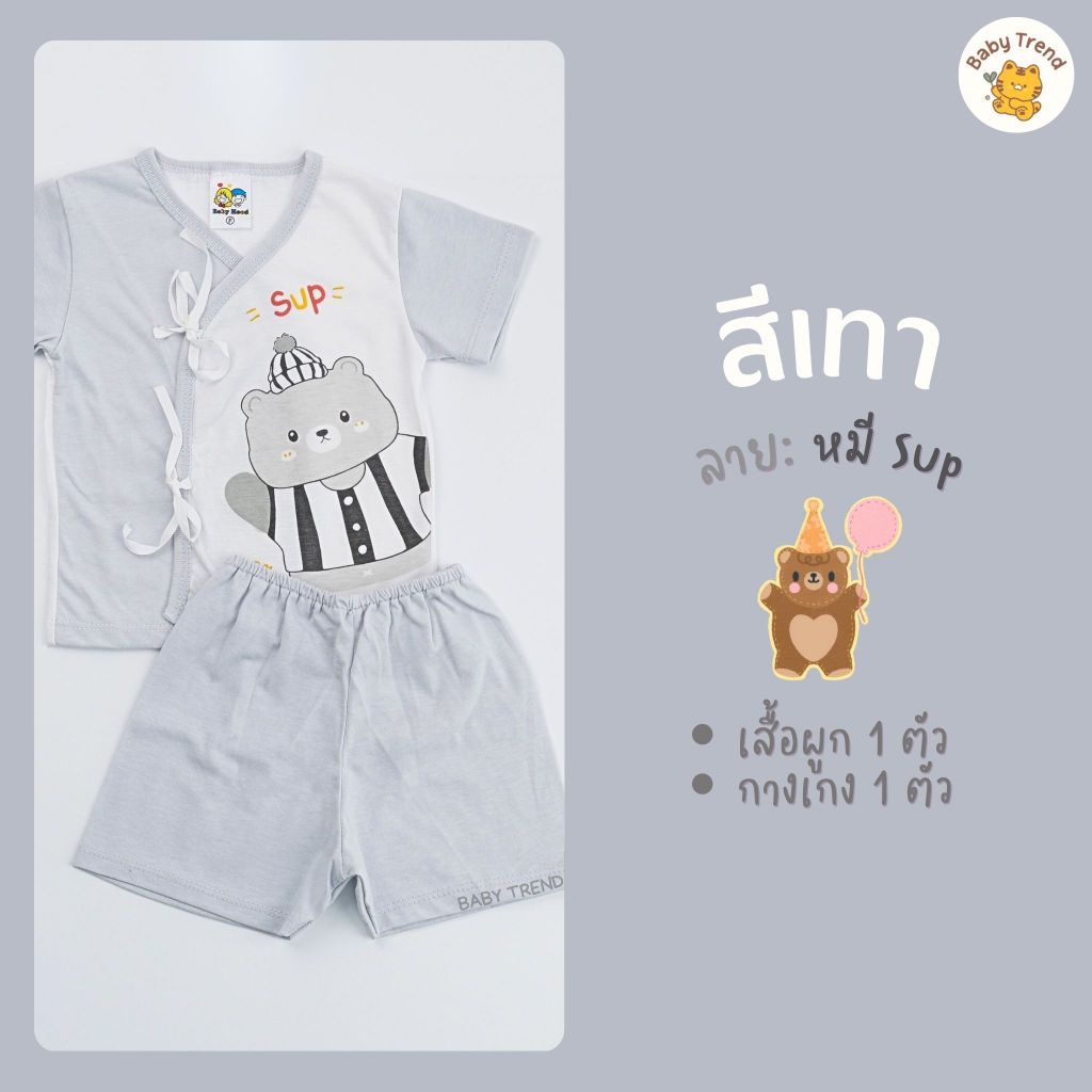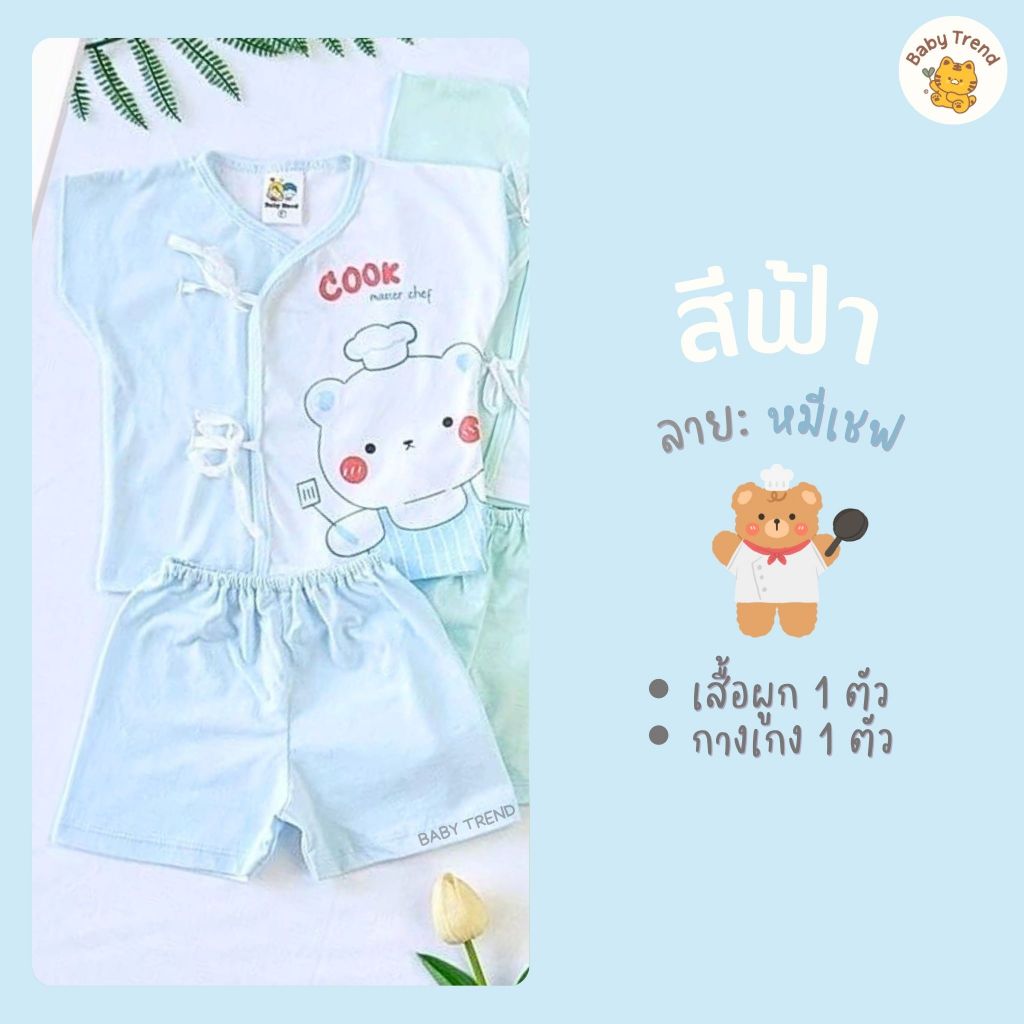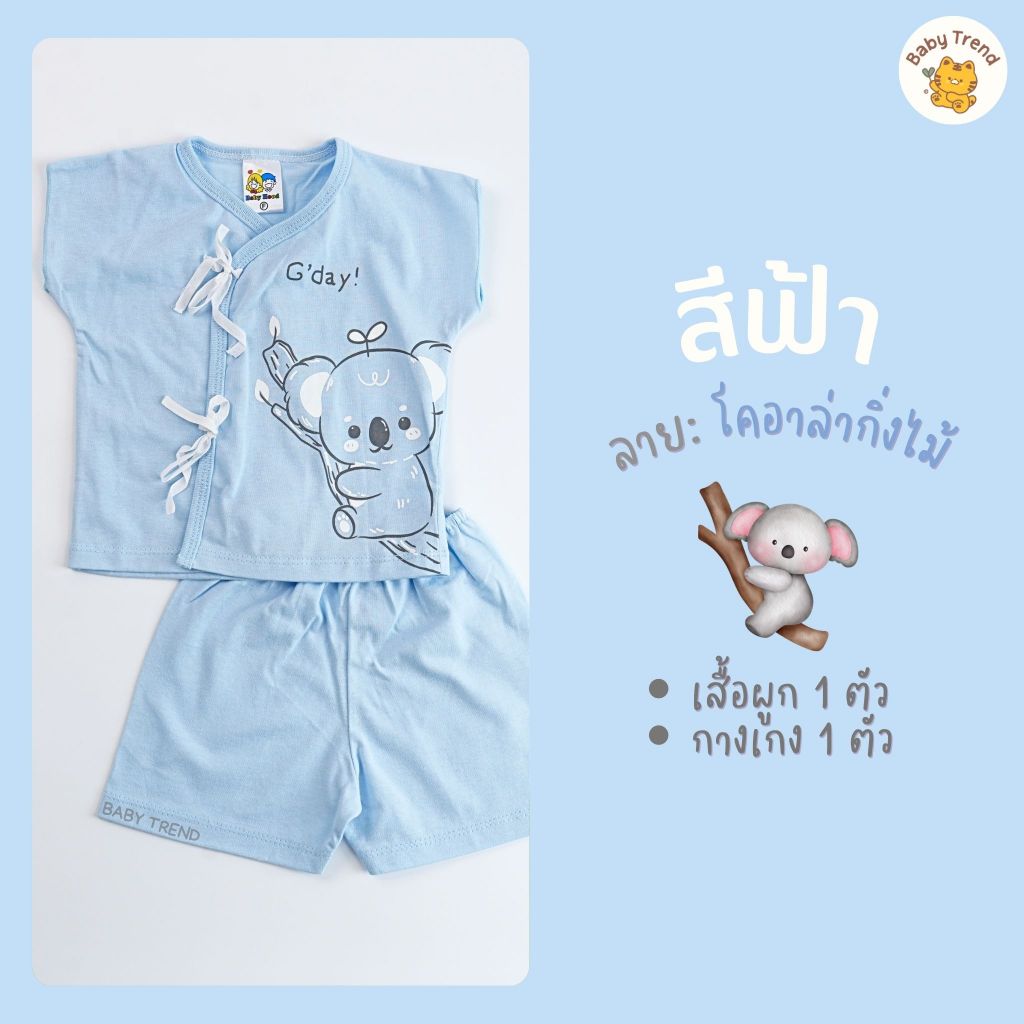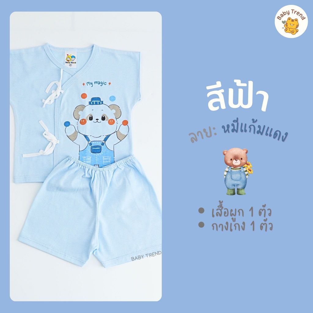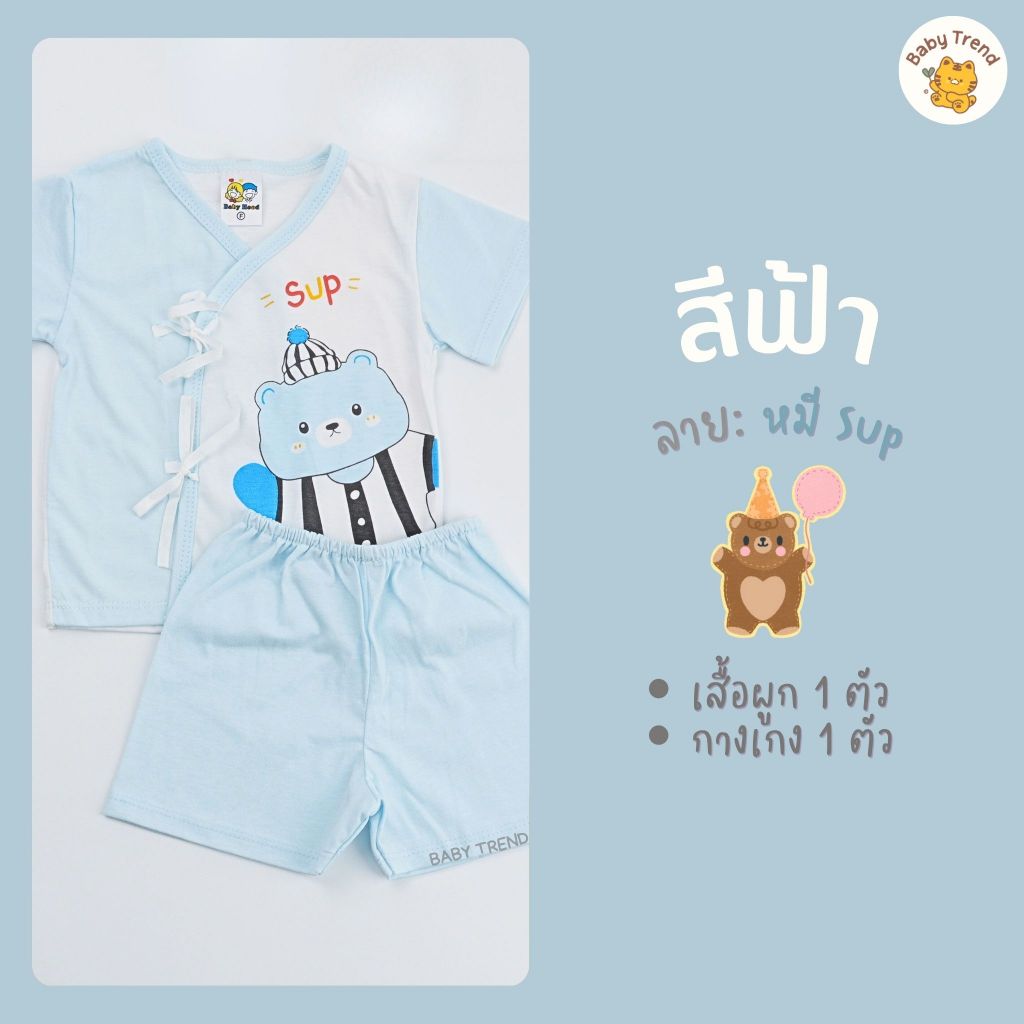 Babyhood เสื้อผูกหน้าแขนสั้นกางเกงขาสั้นเด็ก 0-3 เดือน ชุดเด็กแรกเกิดผ้าคอตตอน (1 ชุด) | Babytrend