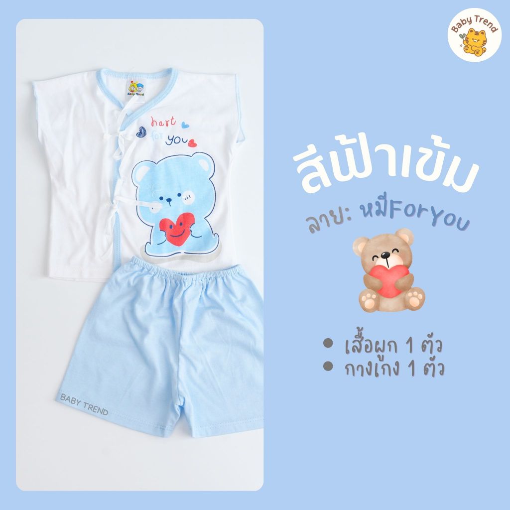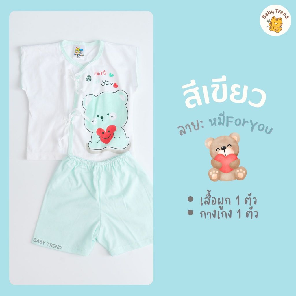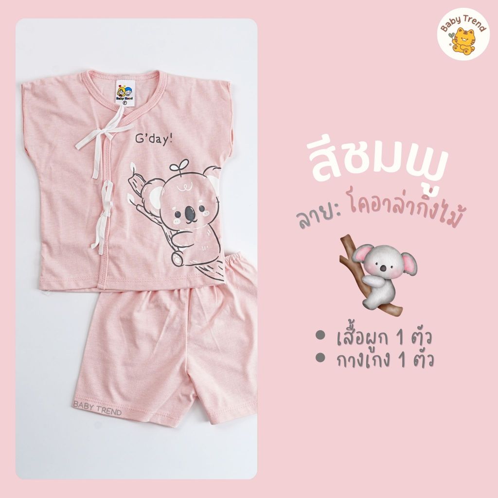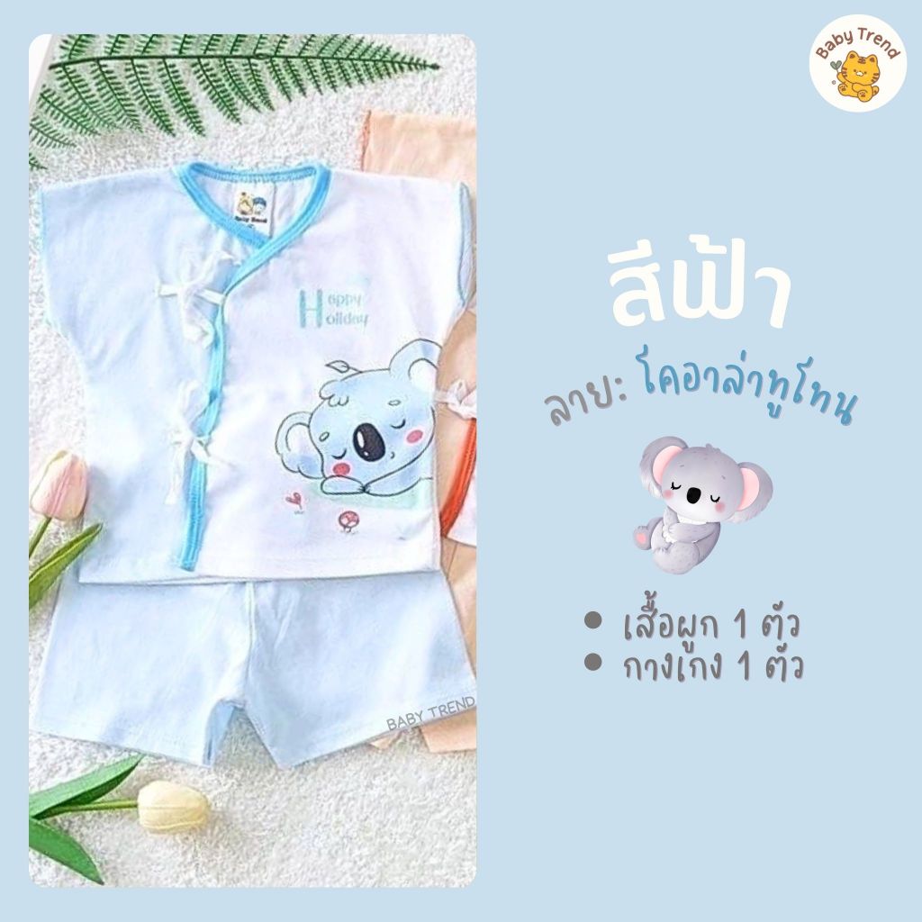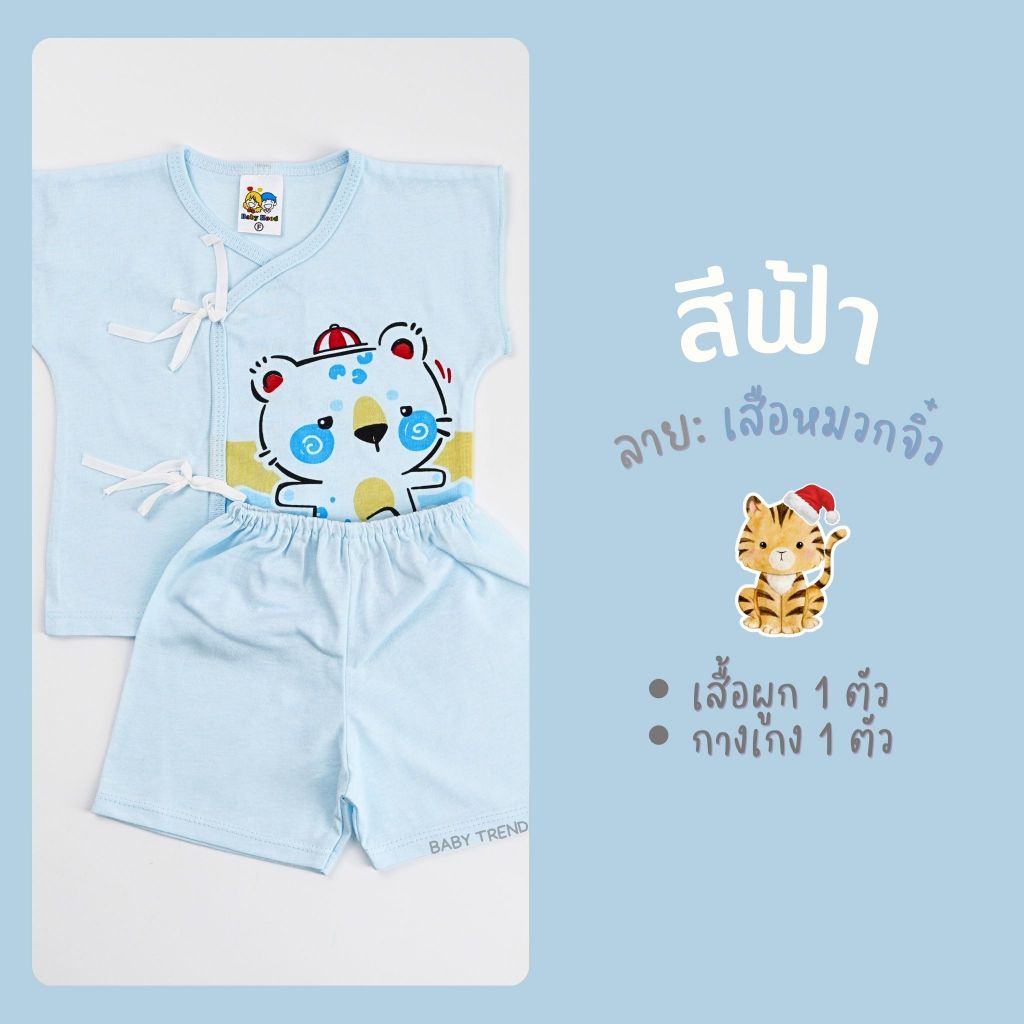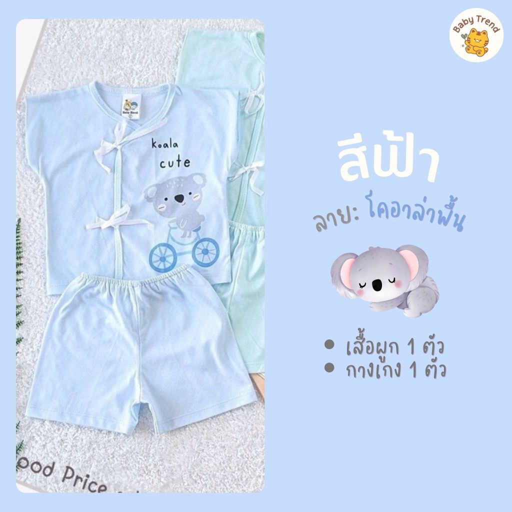 Babyhood เสื้อผูกหน้าแขนสั้นกางเกงขาสั้นเด็ก 0-3 เดือน ชุดเด็กแรกเกิดผ้าคอตตอน (1 ชุด) | Babytrend