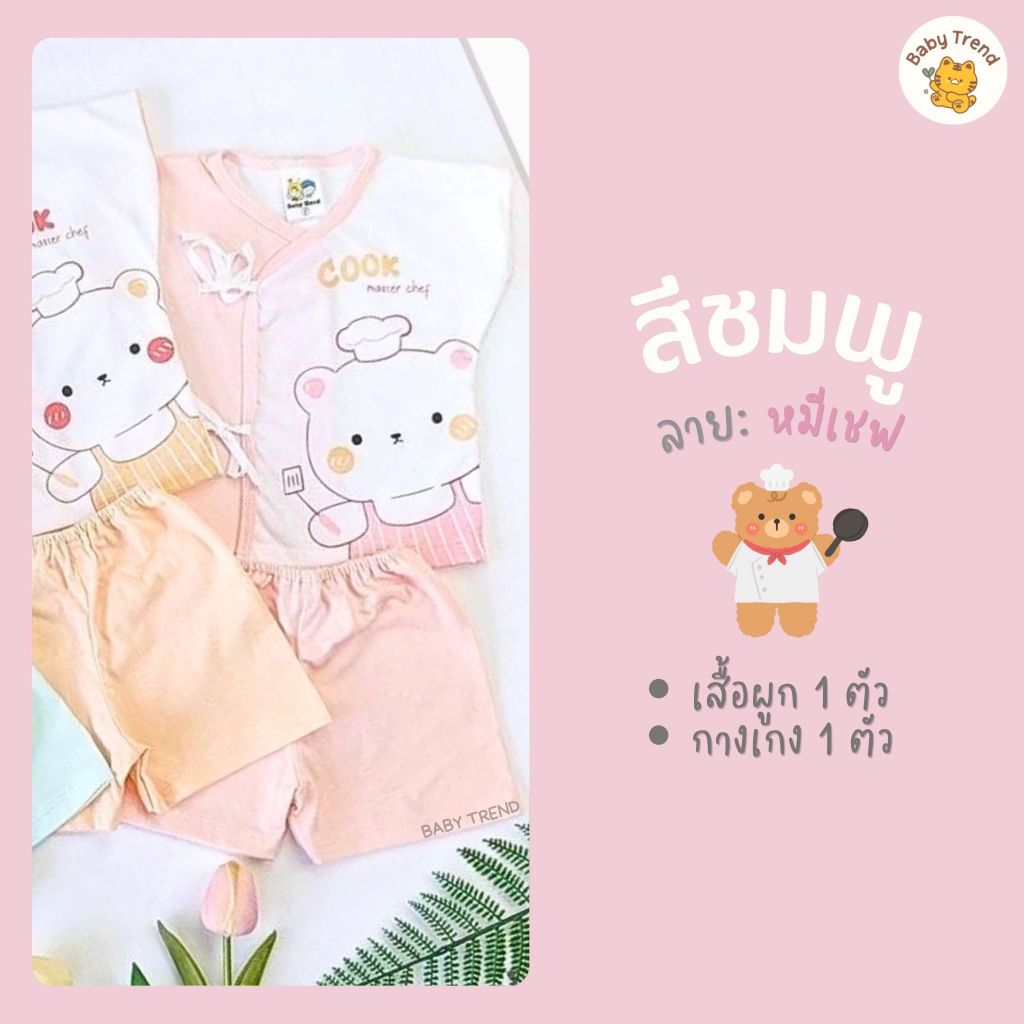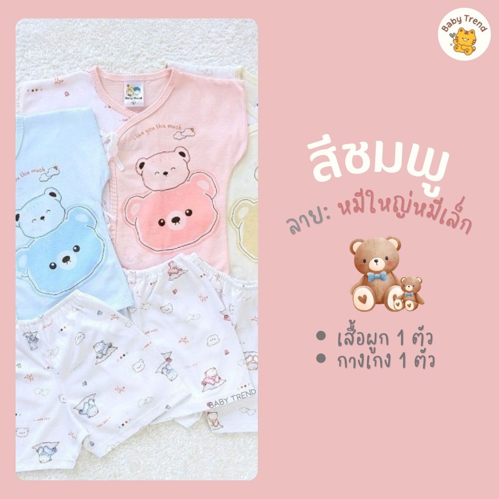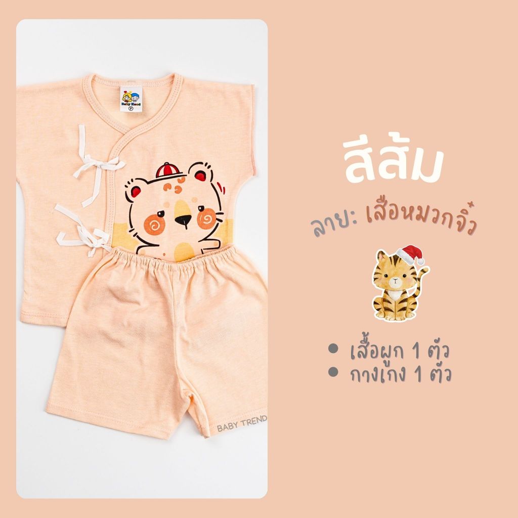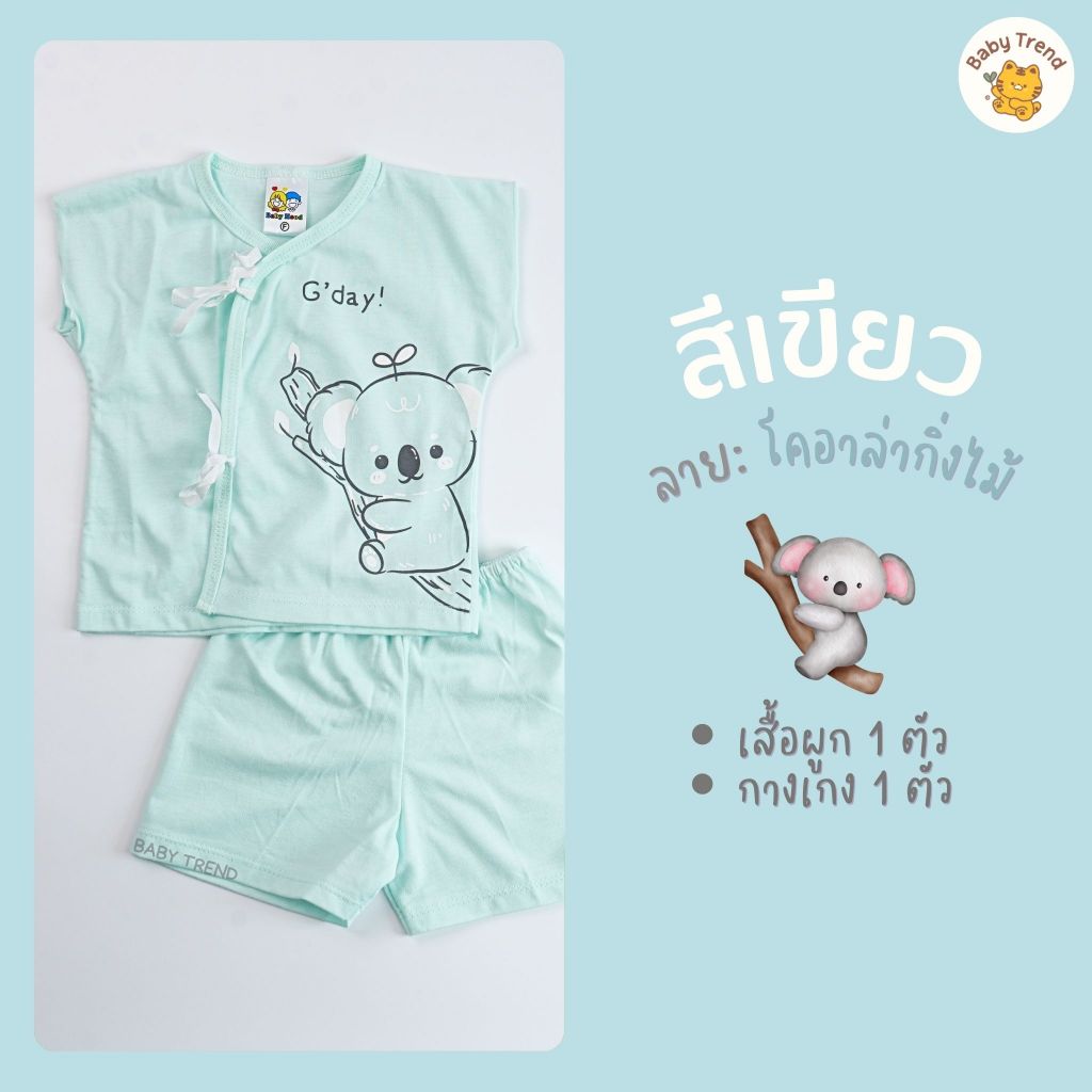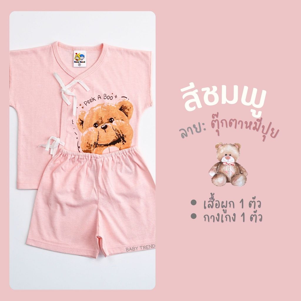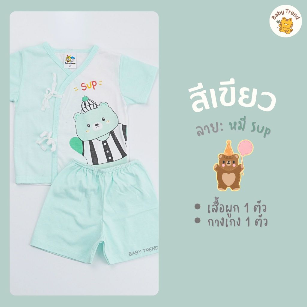 Babyhood เสื้อผูกหน้าแขนสั้นกางเกงขาสั้นเด็ก 0-3 เดือน ชุดเด็กแรกเกิดผ้าคอตตอน (1 ชุด) | Babytrend