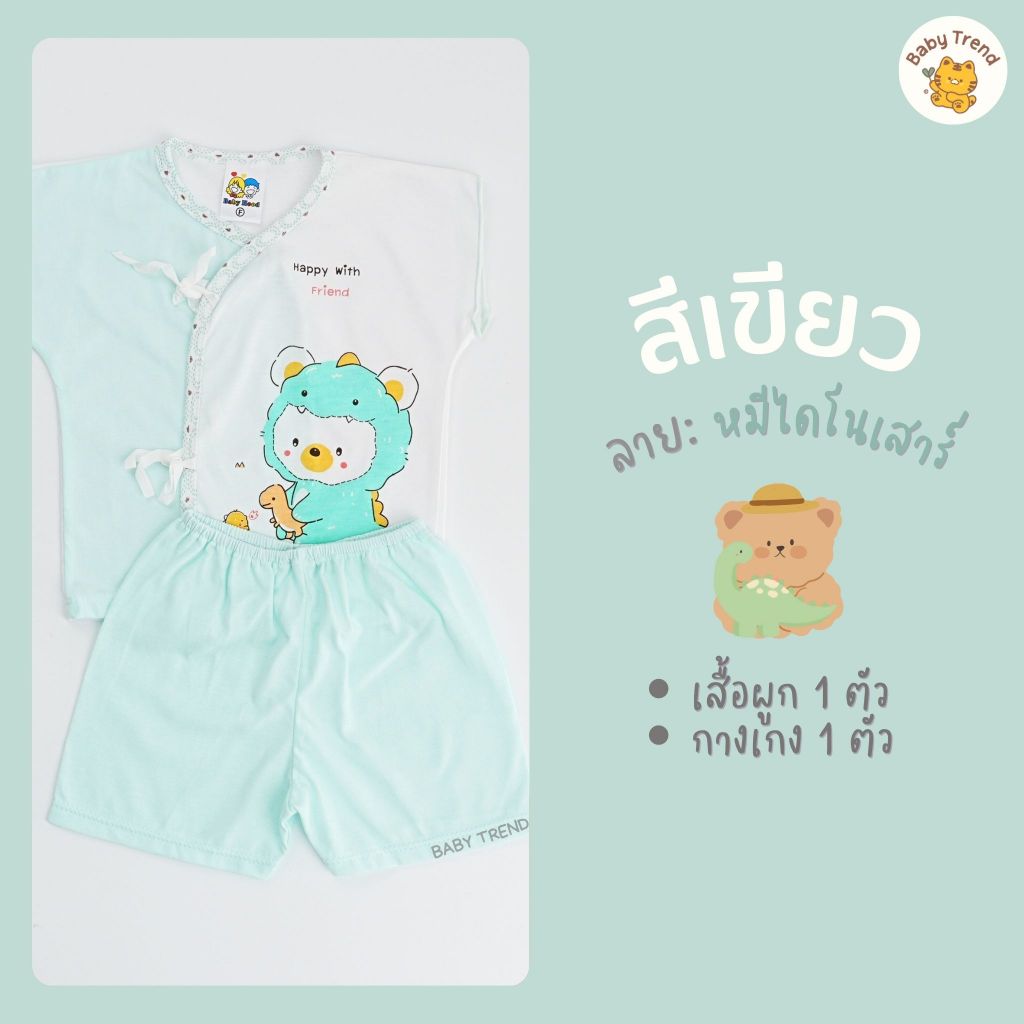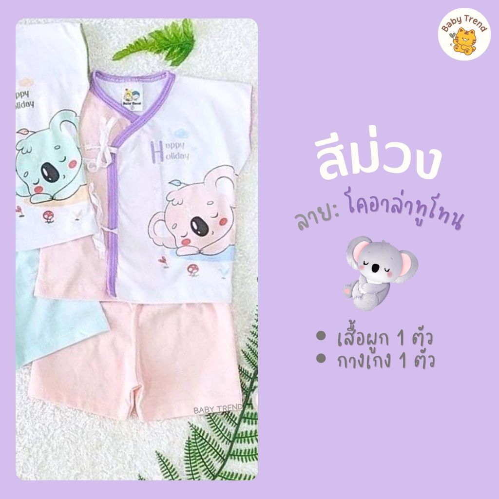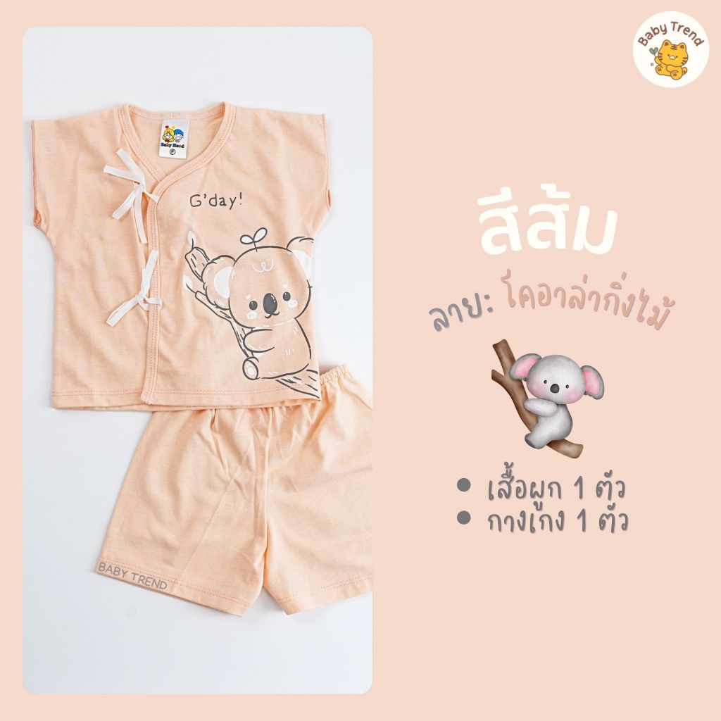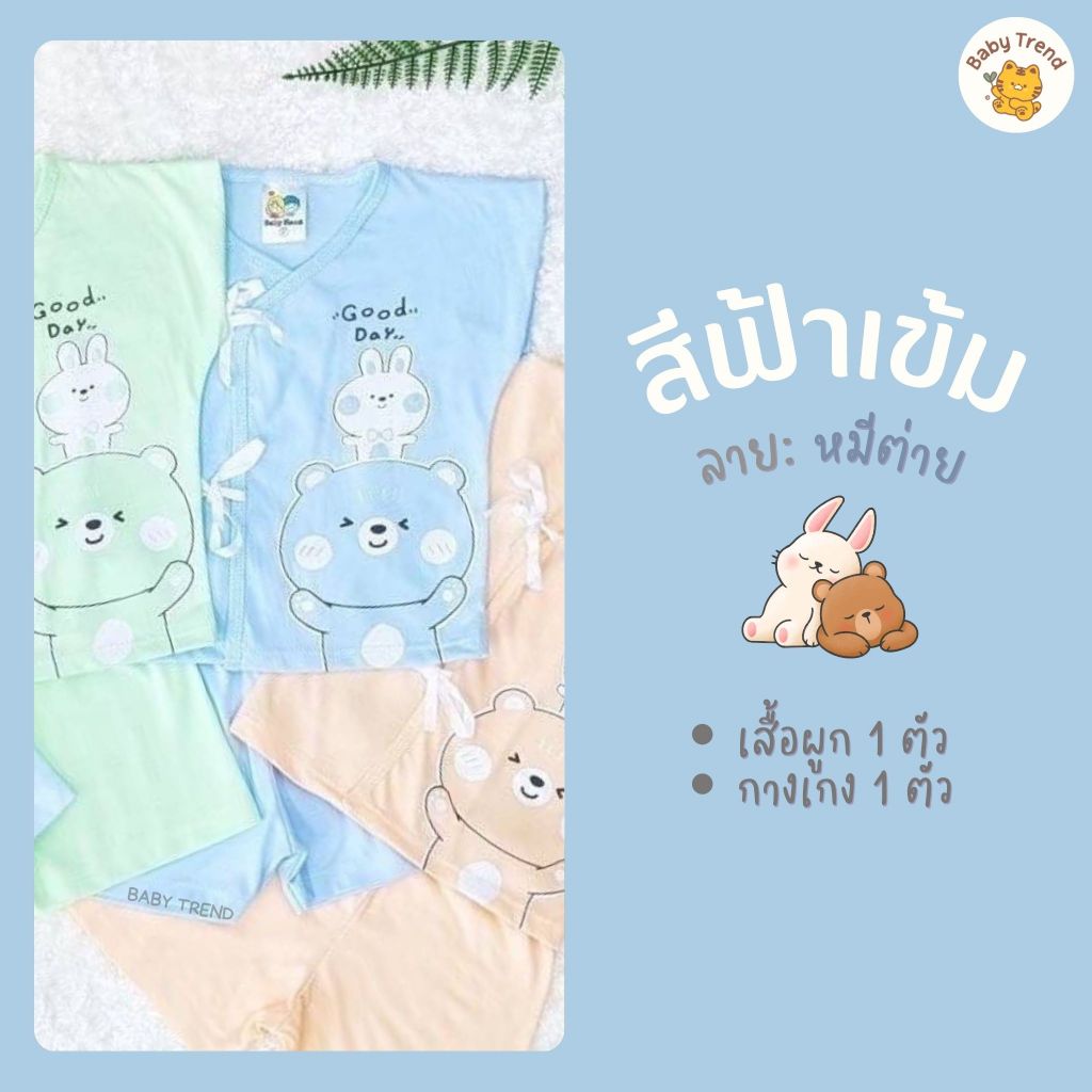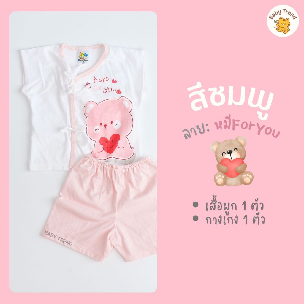 Babyhood เสื้อผูกหน้าแขนสั้นกางเกงขาสั้นเด็ก 0-3 เดือน ชุดเด็กแรกเกิดผ้าคอตตอน (1 ชุด) | Babytrend