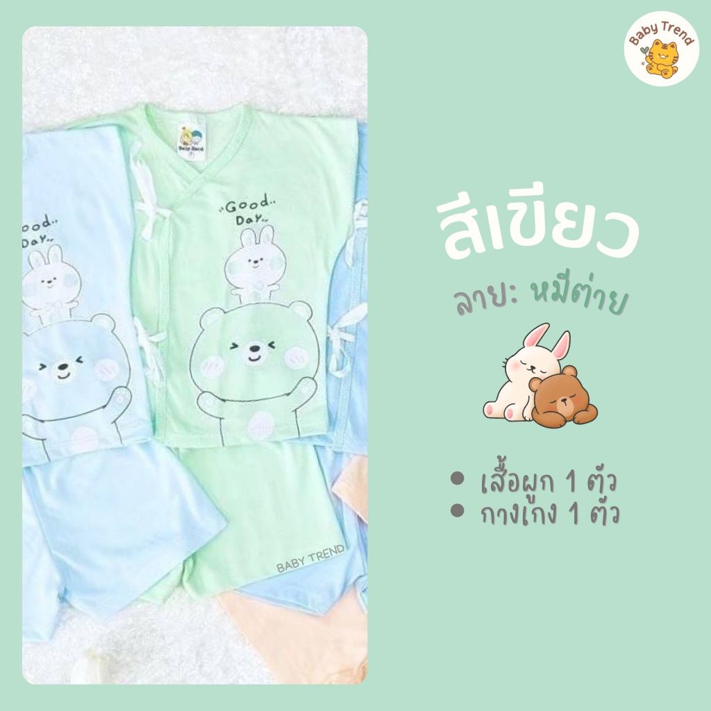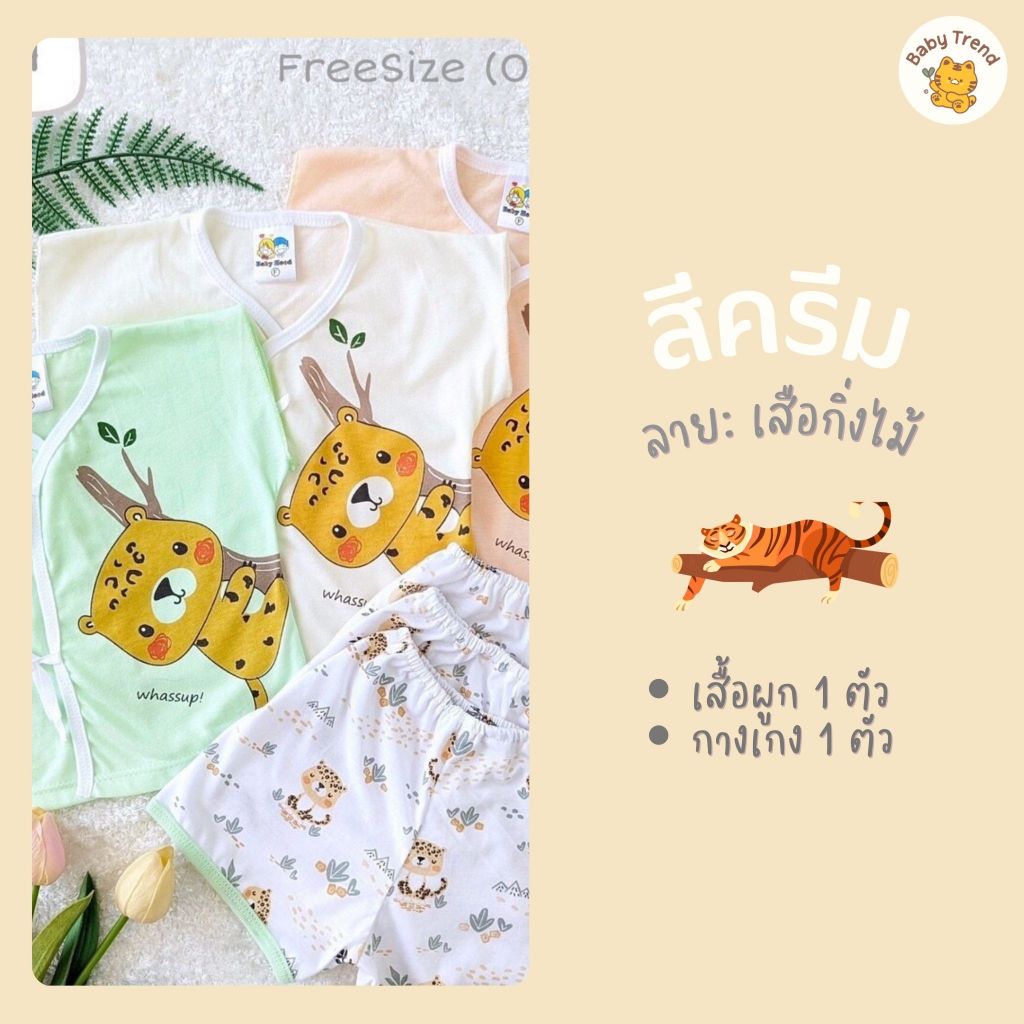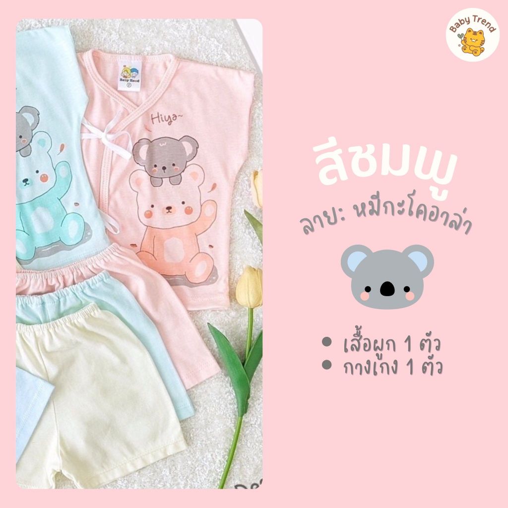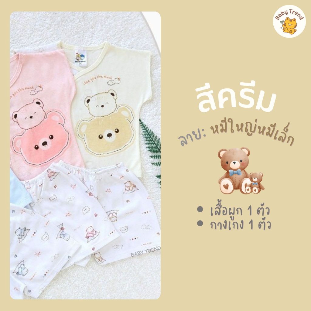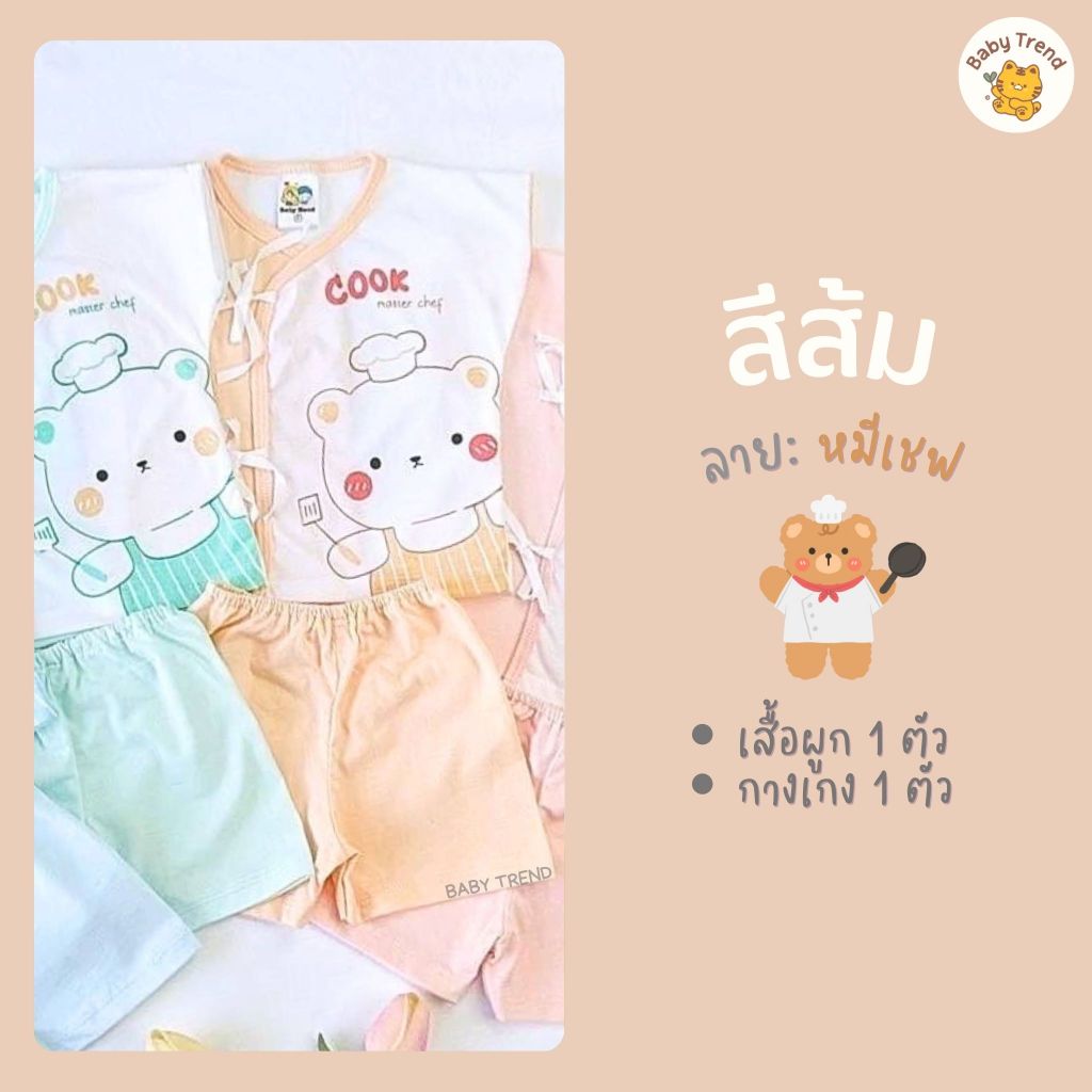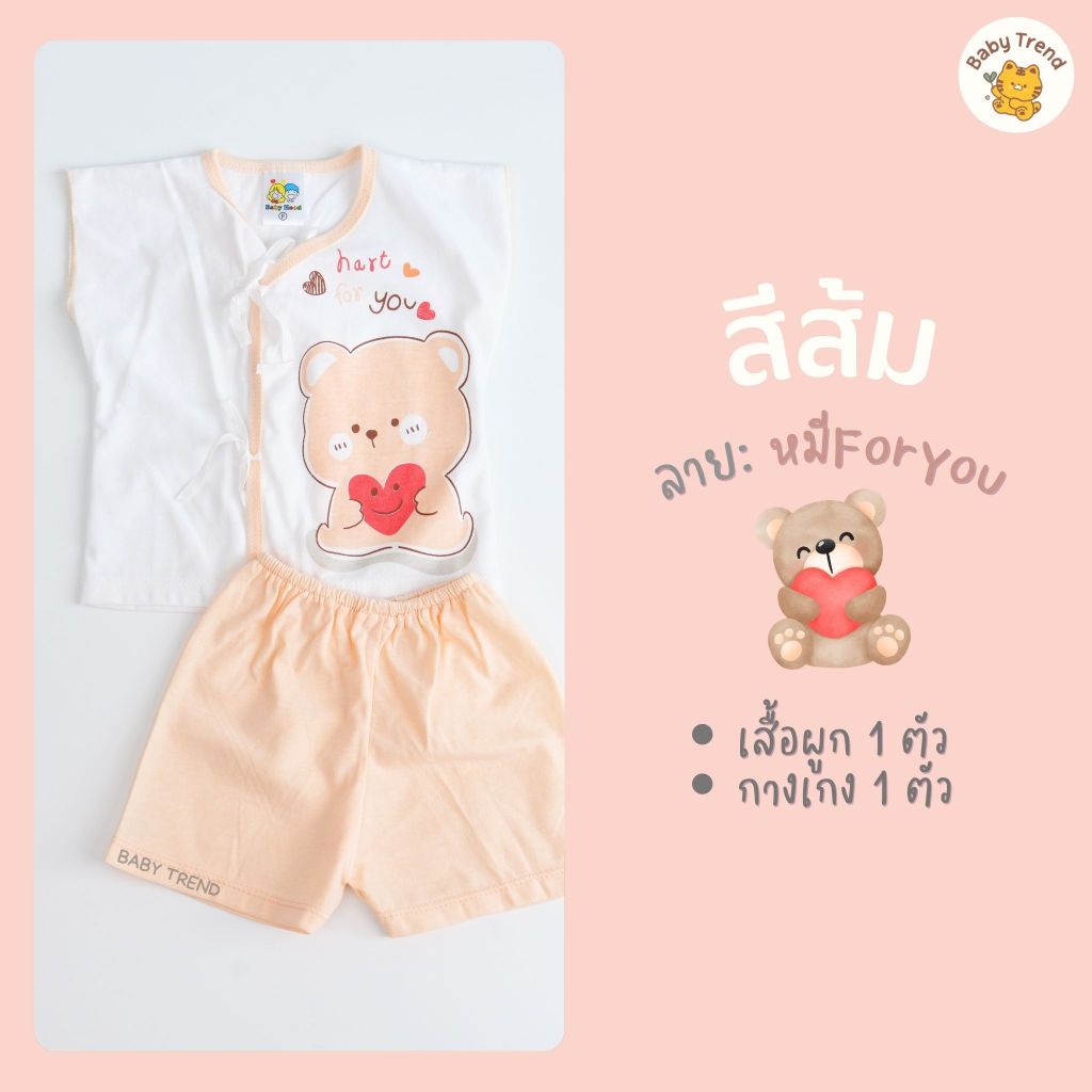 Babyhood เสื้อผูกหน้าแขนสั้นกางเกงขาสั้นเด็ก 0-3 เดือน ชุดเด็กแรกเกิดผ้าคอตตอน (1 ชุด) | Babytrend