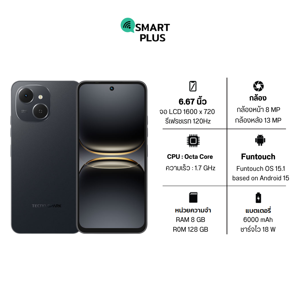 TECNO SPARK 40C (8/128) ฟรีไม้เซลฟี่ ประกันศูนย์ 1 ปี [ หน้าจอ 6.67นิ้ว แบต 6000mAh ] (smartplus)