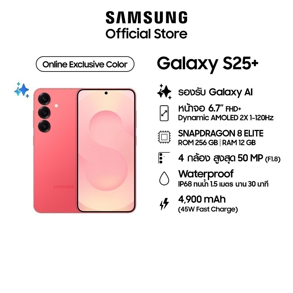 Samsung Galaxy S25+ 5G สีพิเศษ 12/256GB มือถือพร้อม AI แอนดรอย ด์ กล้องสวย