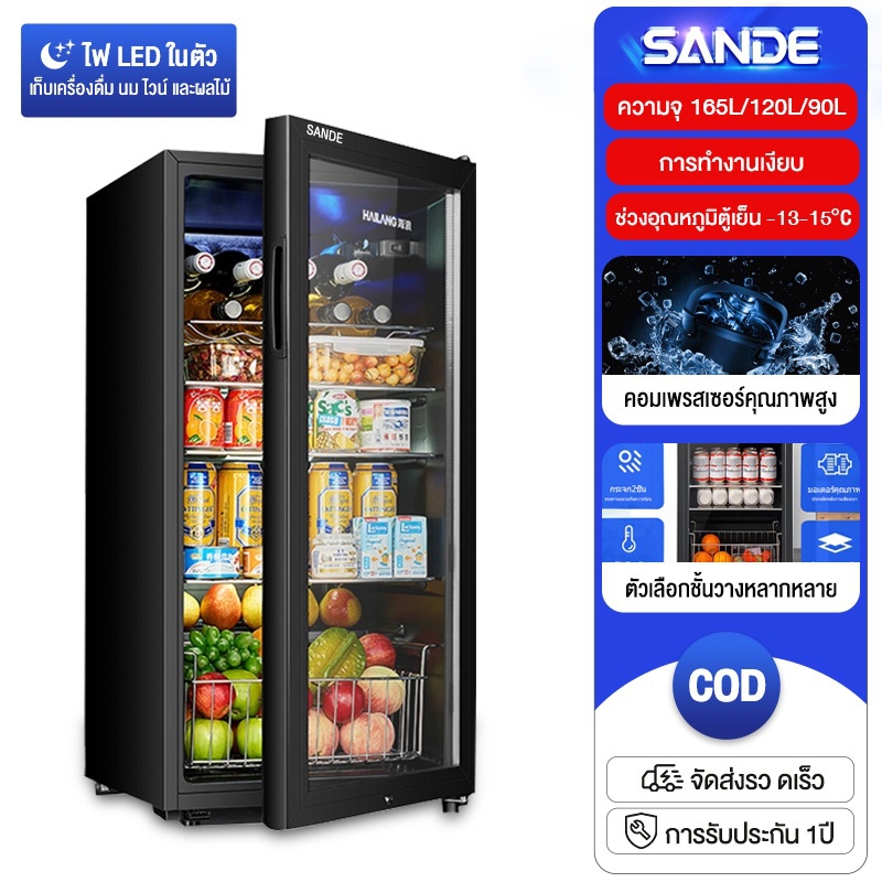 【พร้อมส่ง】SANDE ตู้เย็นประตูเดียว 90/120/165L ตู้แช่เครื่องดื่มในครัวเรือน