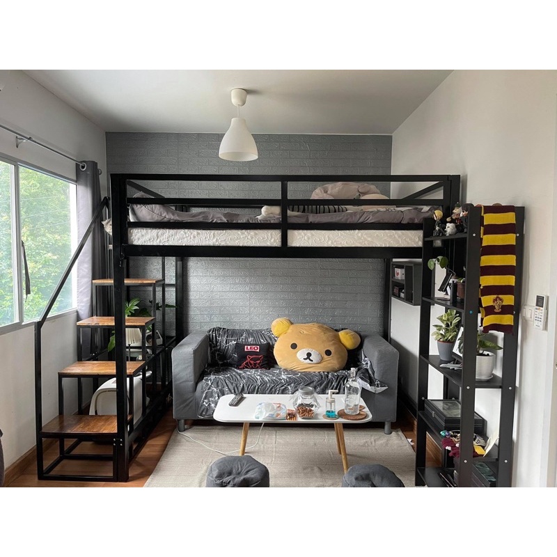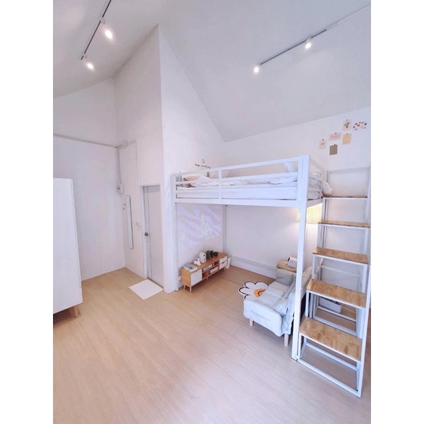 เตียง2ชั้น ชั้นล่างโล่ง ทำจากเหล็กกล่องอย่างดี มี 4 ขนาดให้เลือก 3 ฟุต 3.5 ฟุต 5 ฟุต 6 ฟุต