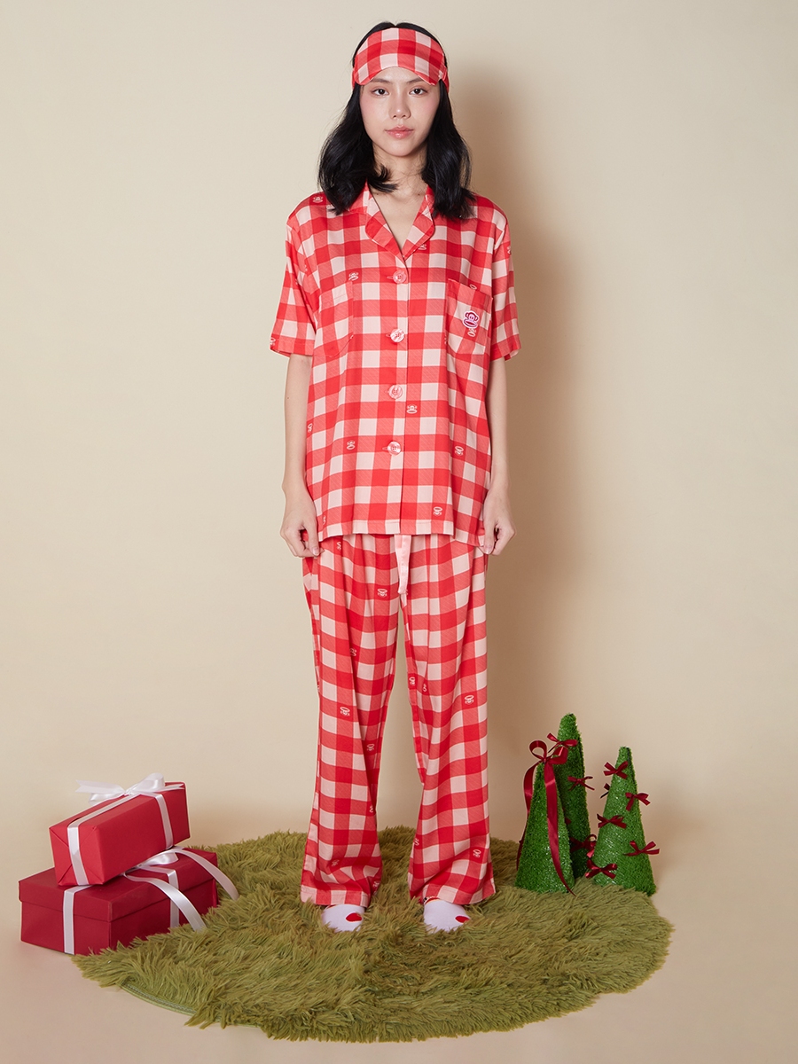 PAUL FRANK ชุดนอนกางเกงขายาว SLEEPY SQUARES IN RUBY PANTS SET