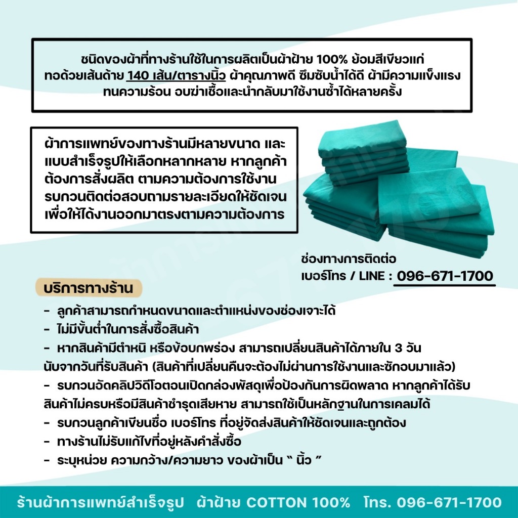 เชือกมัด เชือดมัดผ้าห่อSet หัตถการทางการแพทย์ ผ้าฝ้ายสีเขียว Cotton 100%