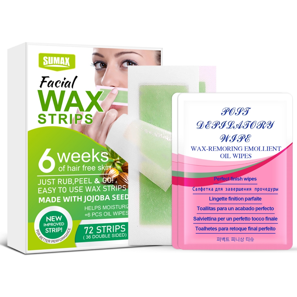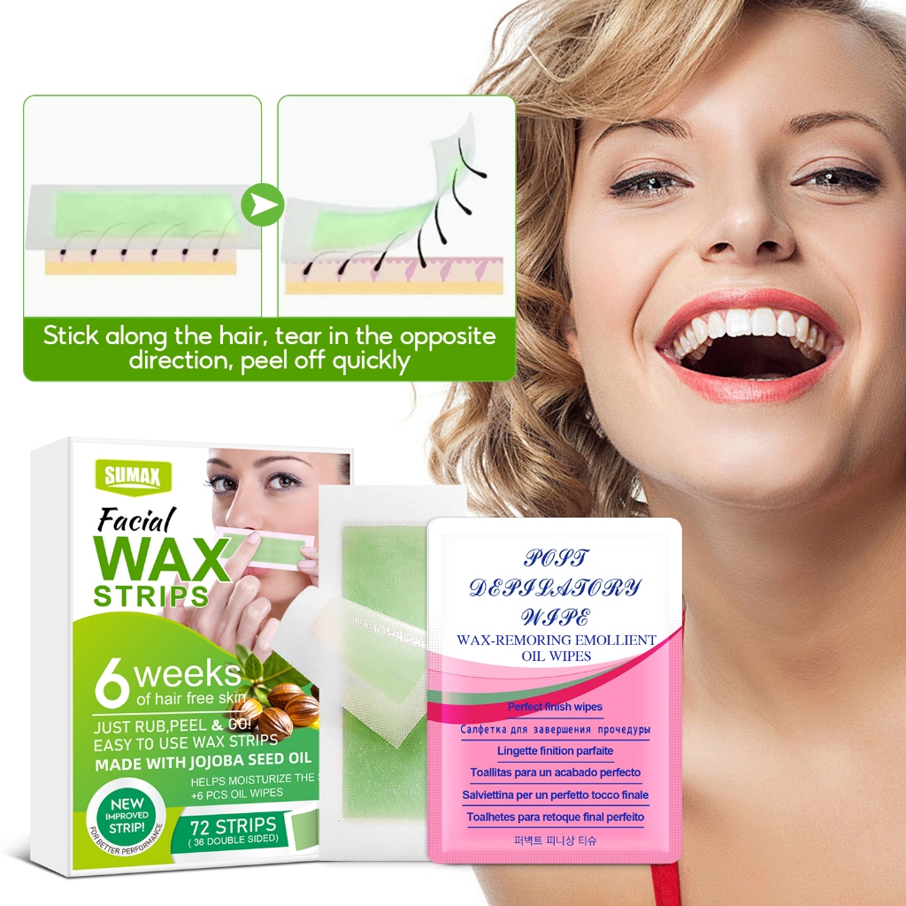 Facial Wax Strips: กําจัดขนที่รวดเร็วและอ่อนโยนสําหรับใบหน้า คิ้ว ปากบนและคาง - เหมาะสําหรับทุกสภาพผิว 36 Wax Strips + 6 Wet Wipes