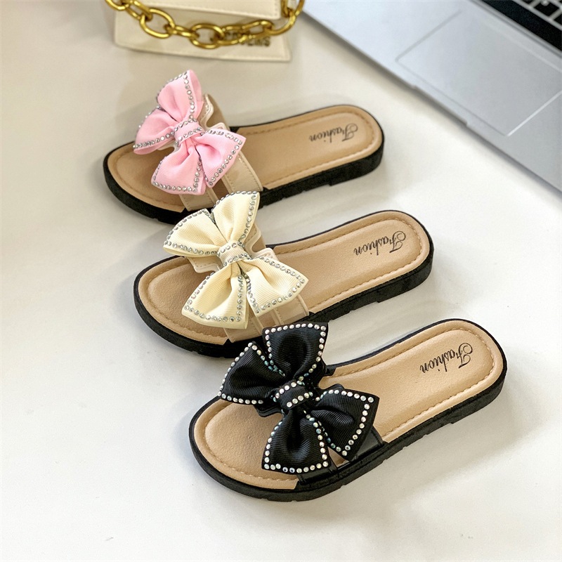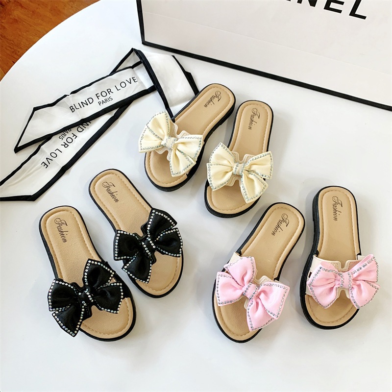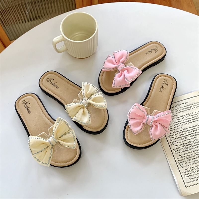 KIDSZONE รองเท้าแตะเด็กผู้หญิงแบบสวม ติดโบว์ รุ่น YND8816