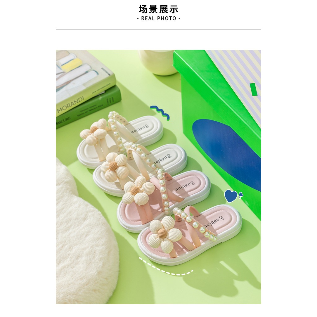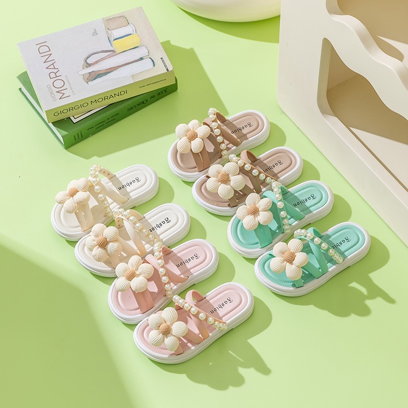 KIDSZONE รองเท้าแตะแบบสวมสายไขว้ โบว์ดอกไม้ รุ่น YND8818