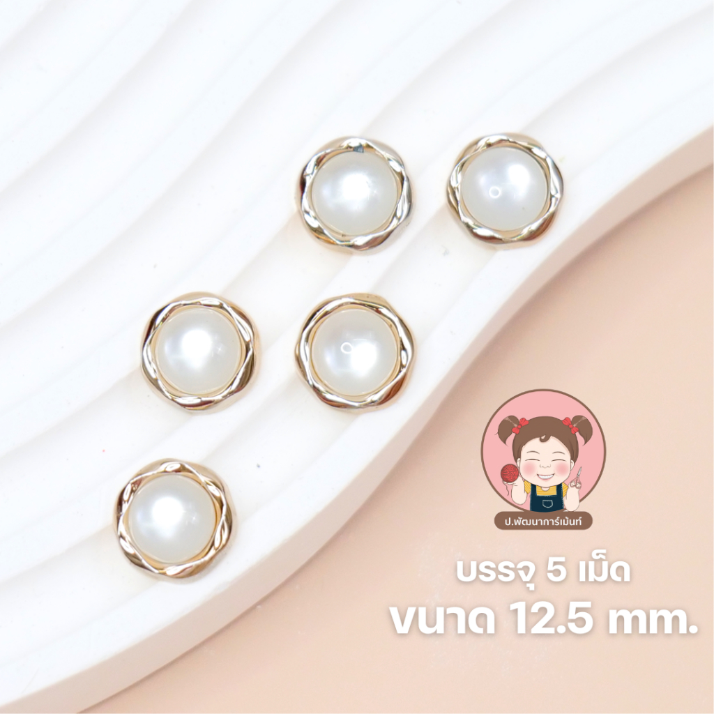 กระดุมแฟชั่น กระดุมมุก กระดุมสวยงาม [แพ็ค 5 เม็ด]